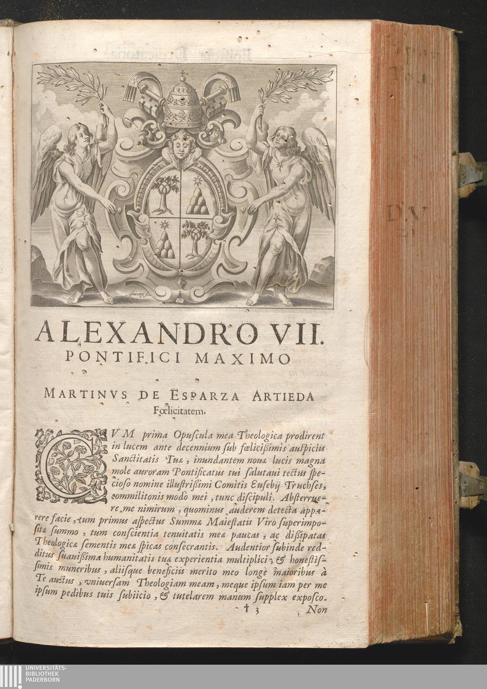 Alexandro VII. Pontifici Maximo Martinvs De Esparza Artieda Fœlicitatem.
