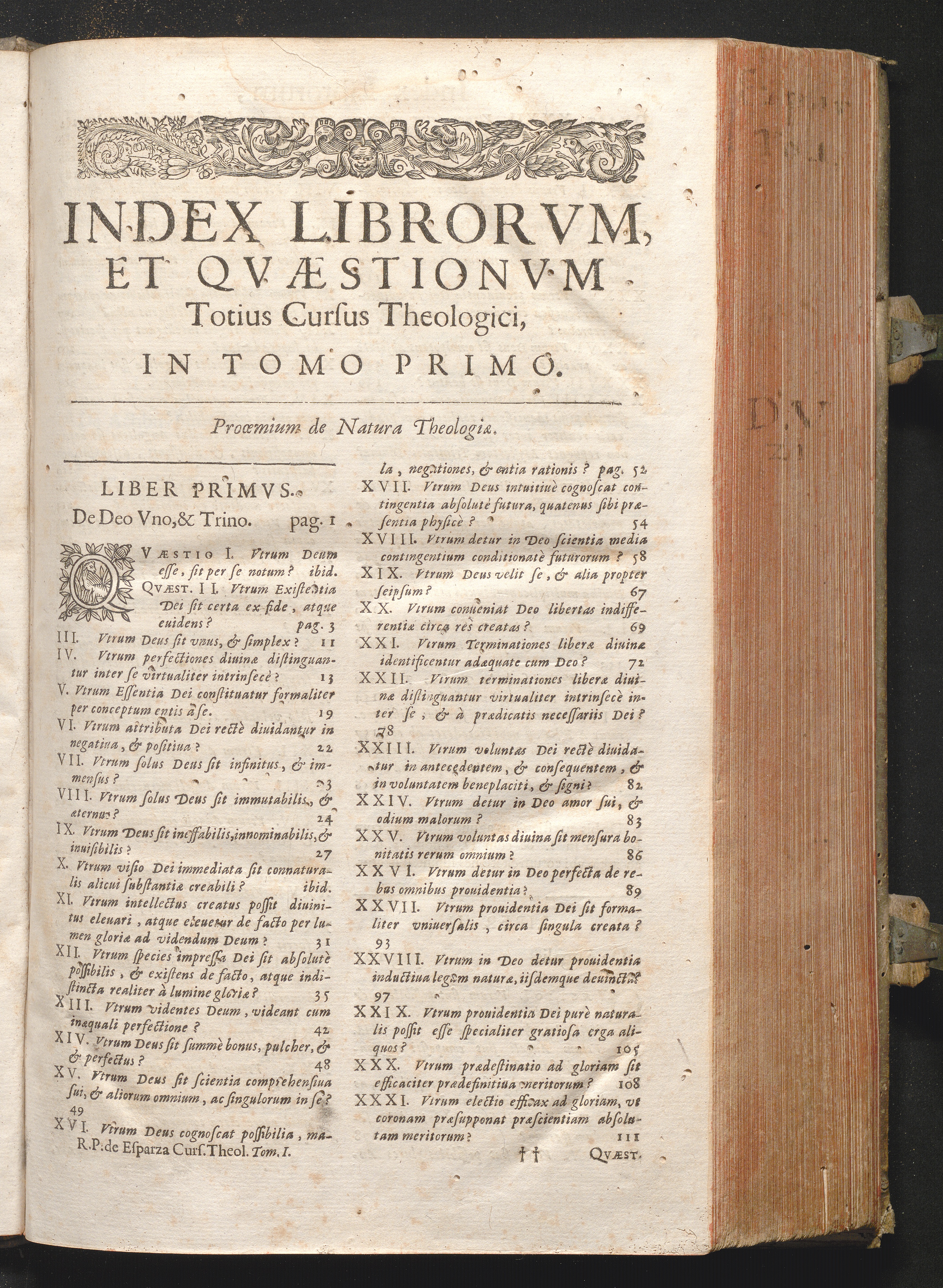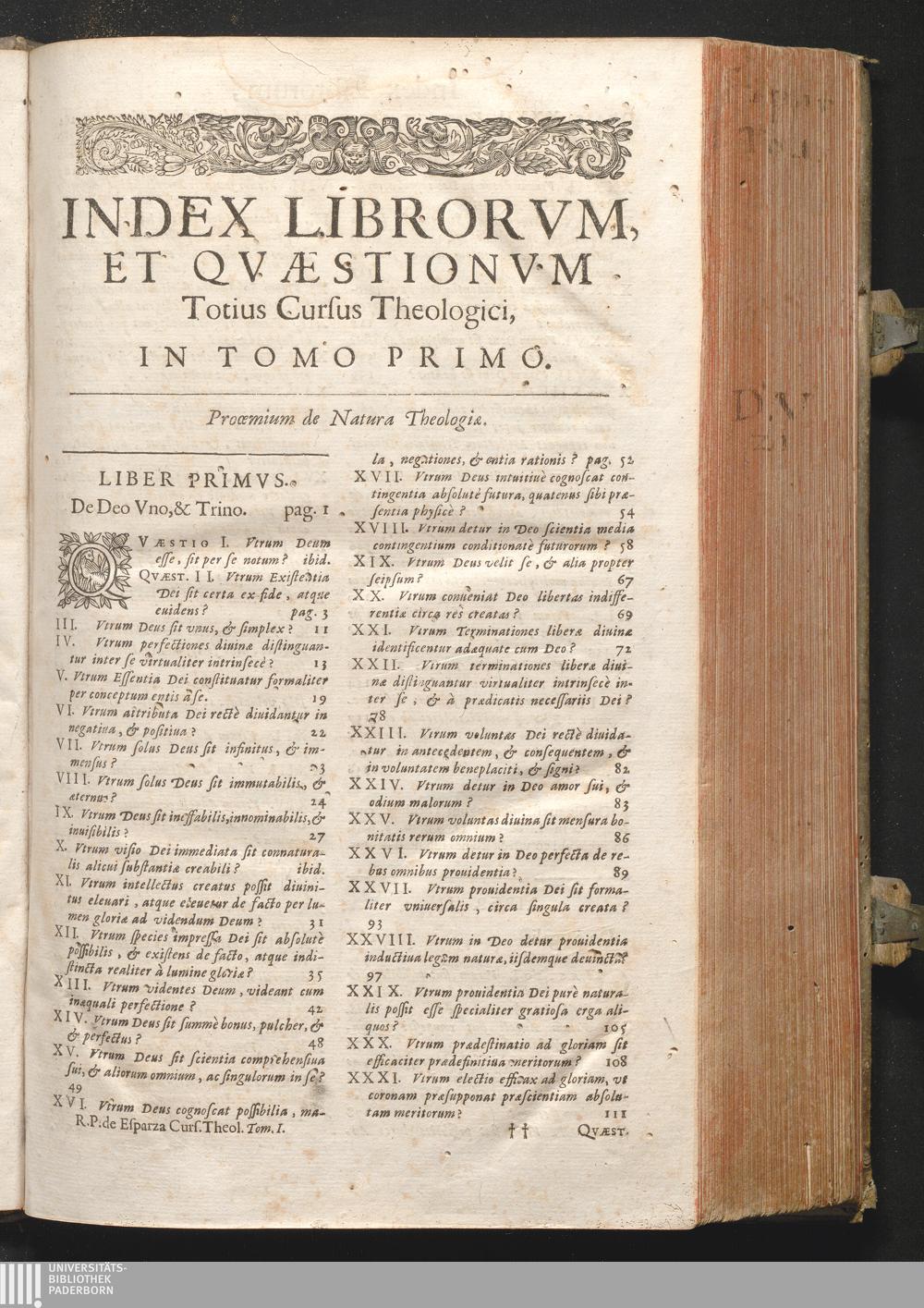 Index Librorvm, Et Qvæstionvm Totius Cursus Theologici, In Tomo Primo.