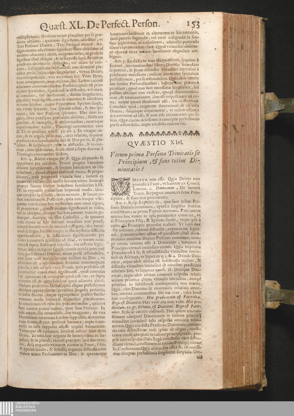 XLI. Vtrum prima Persona Trinitatis sit Principium, & fons totius Diuinitatis?