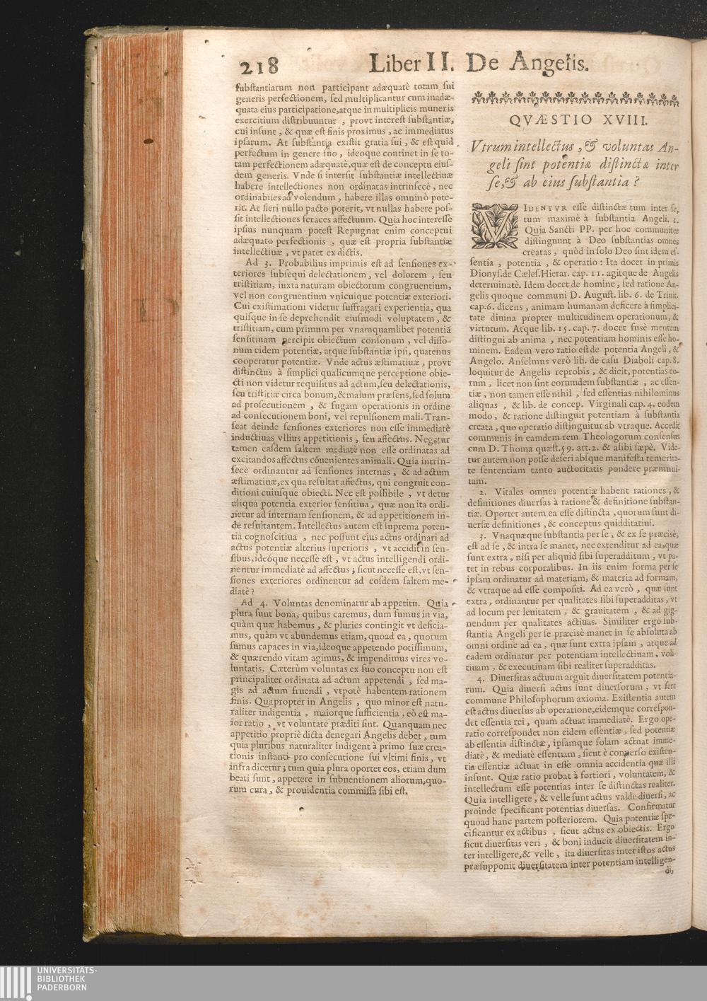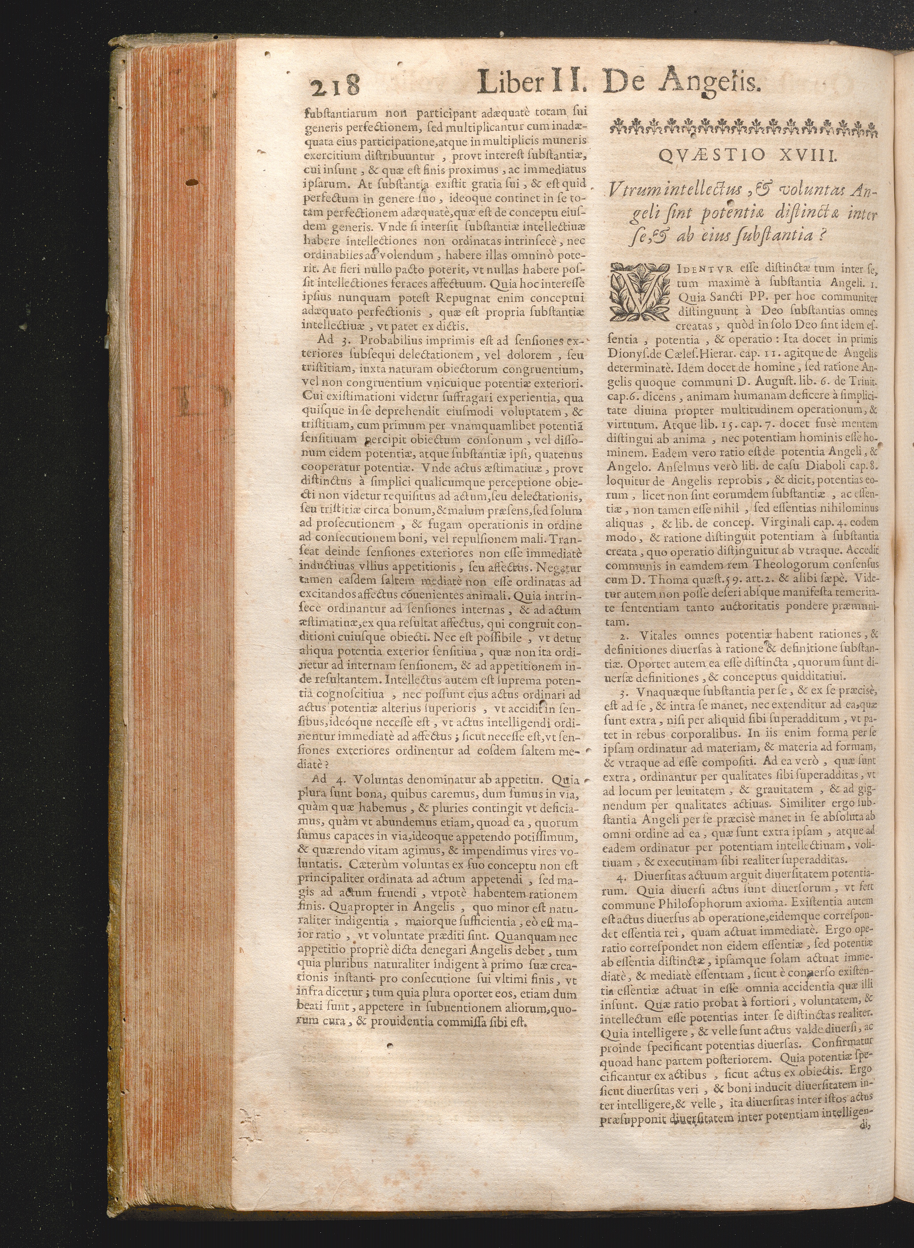 XVIII. Vtrum intellectus, & voluntas Angeli sint potentiæ distinctæ inter se, & ab[...]