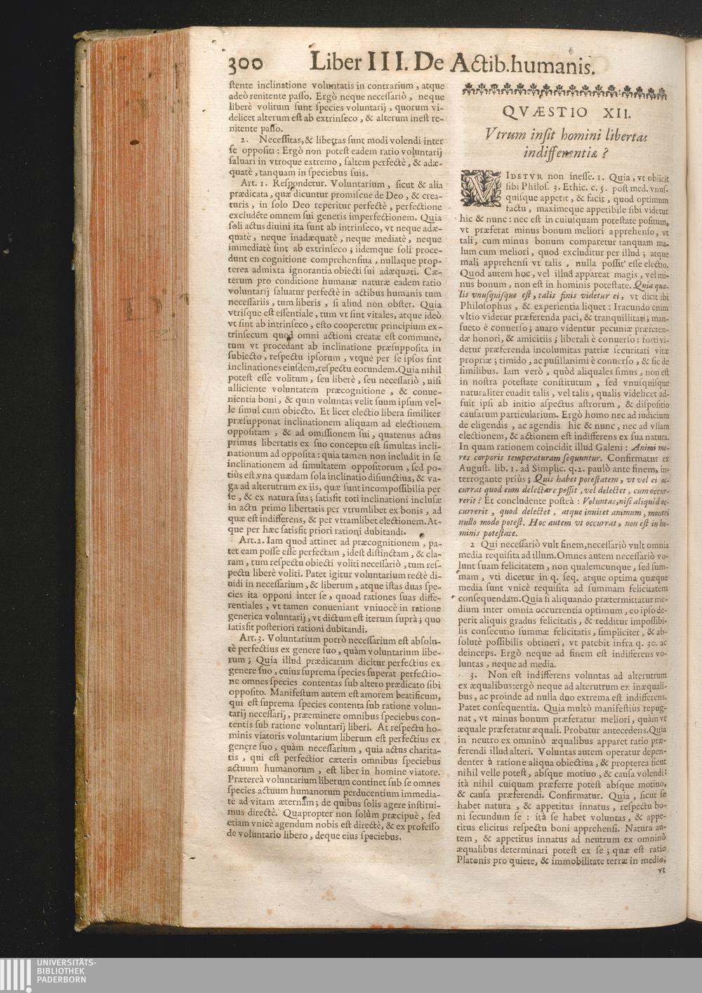 XII. Vtrum insit homini libertas indifferentiæ?