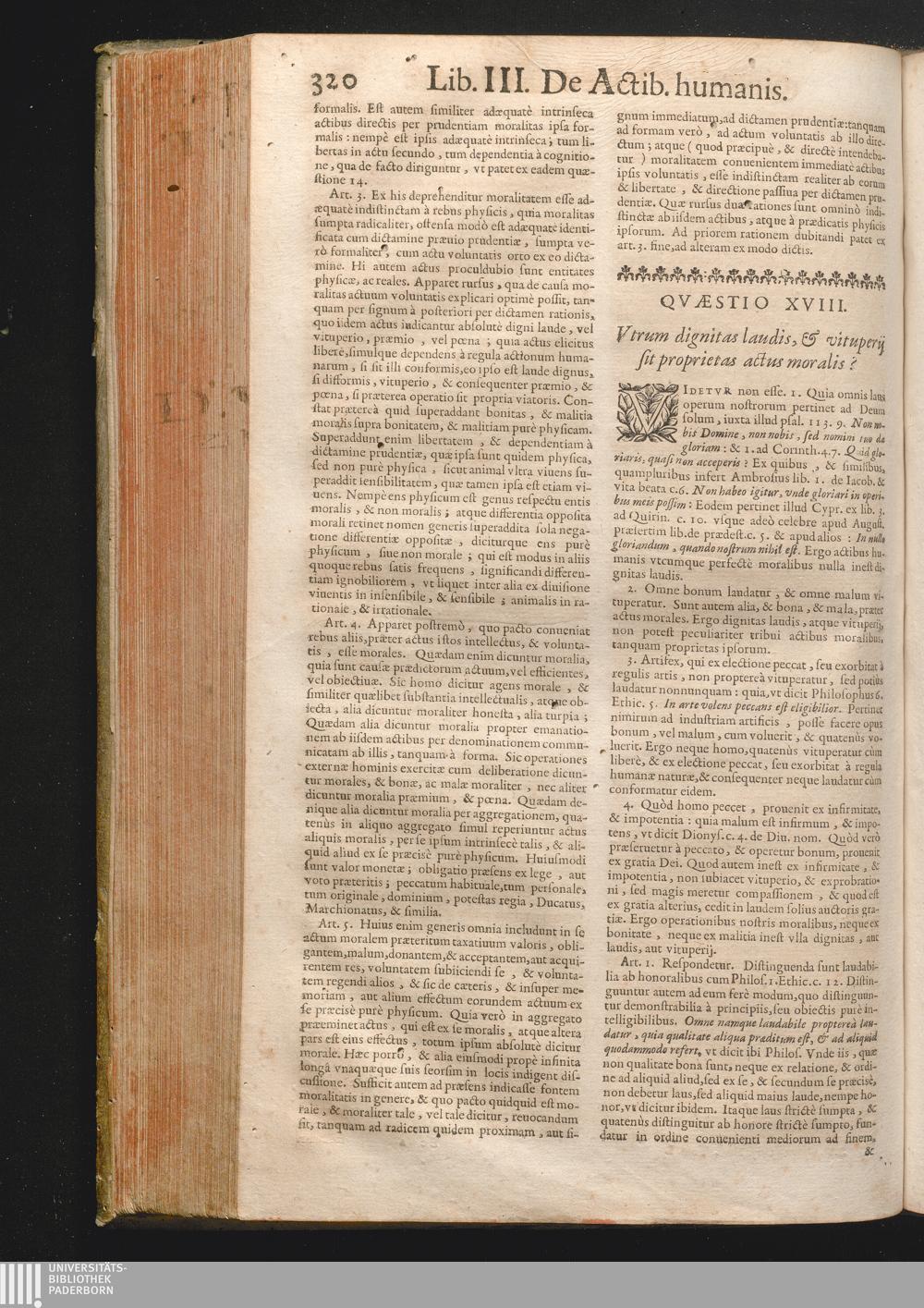 XVIII. Vtrum dignitas laudis, & vituperij sit proprietas actus moralis?