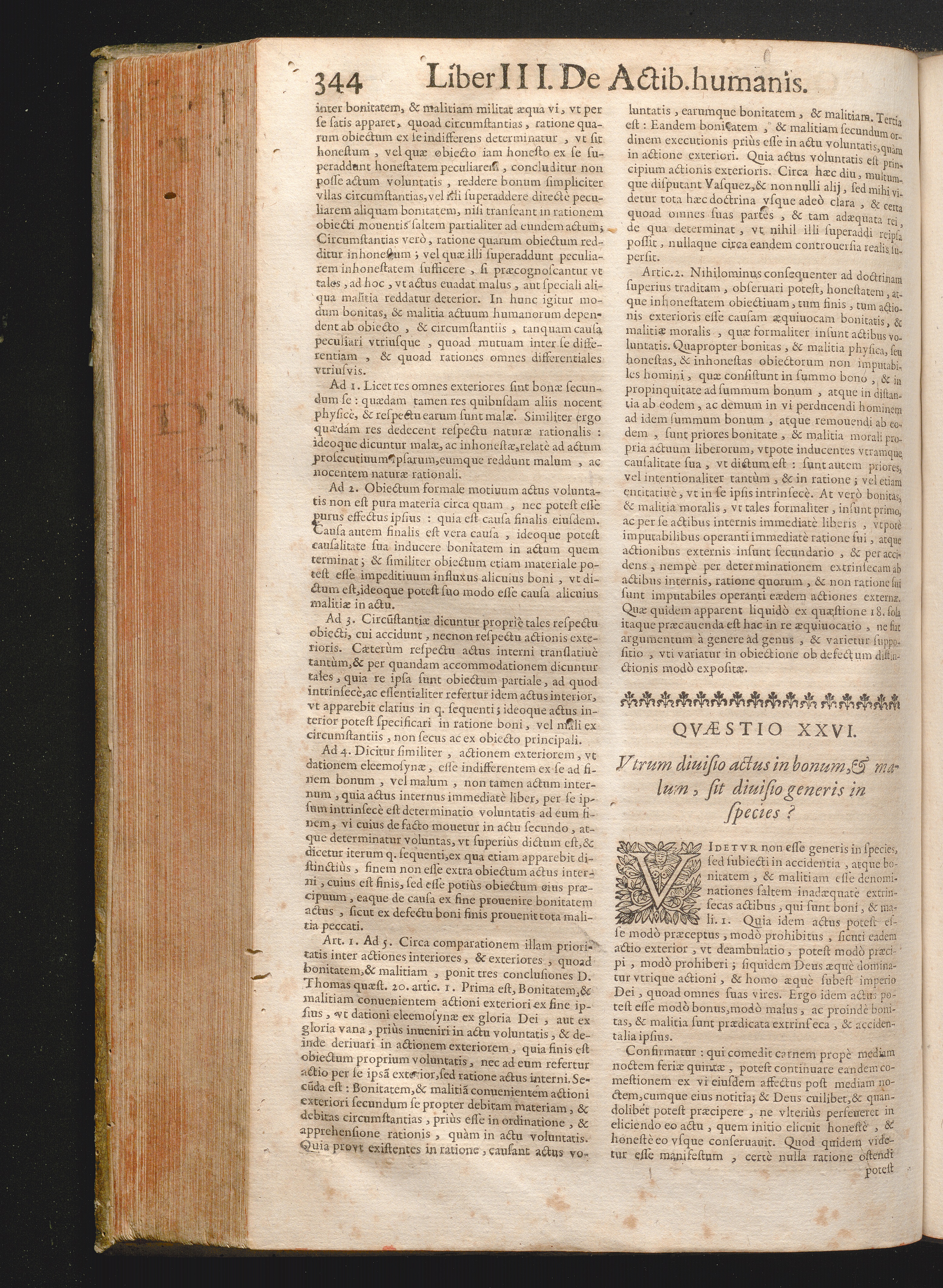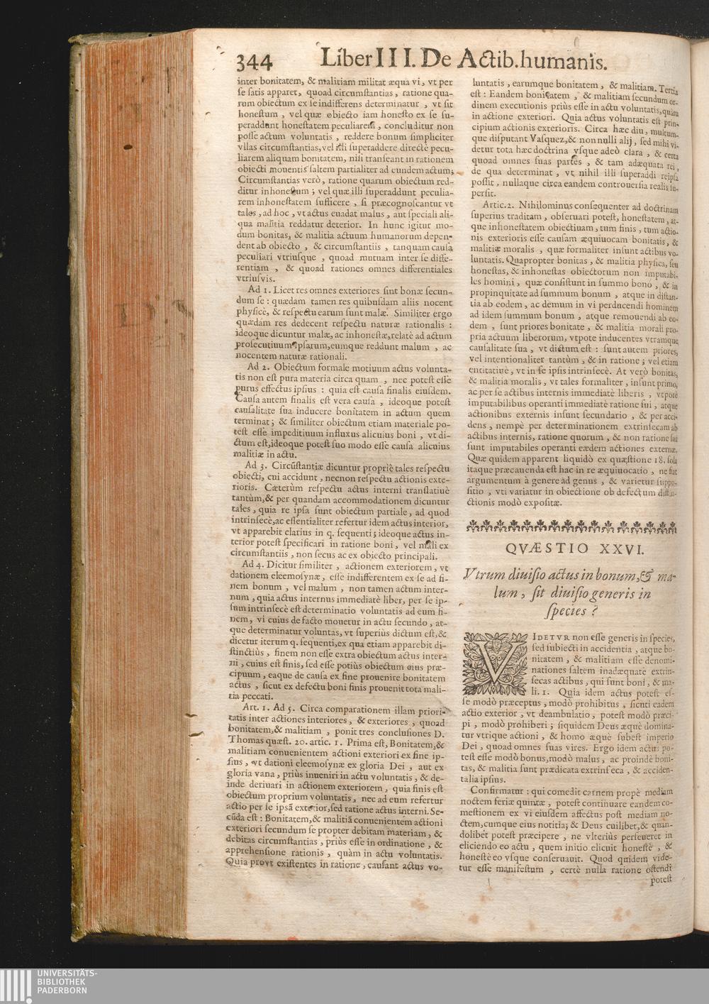 XXVI. Vtrum diuisio actus in bonum, & malum, sit diuisio generis in species?