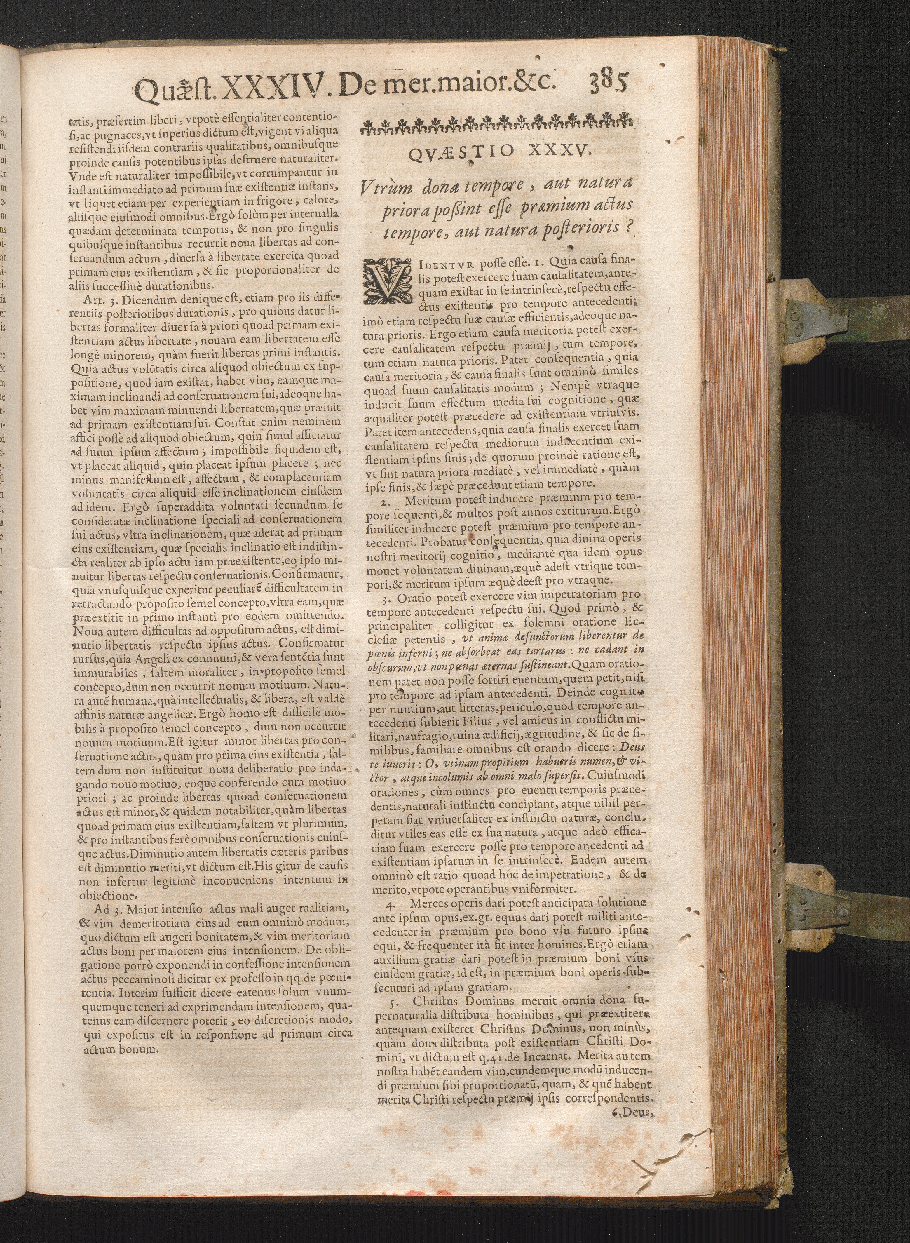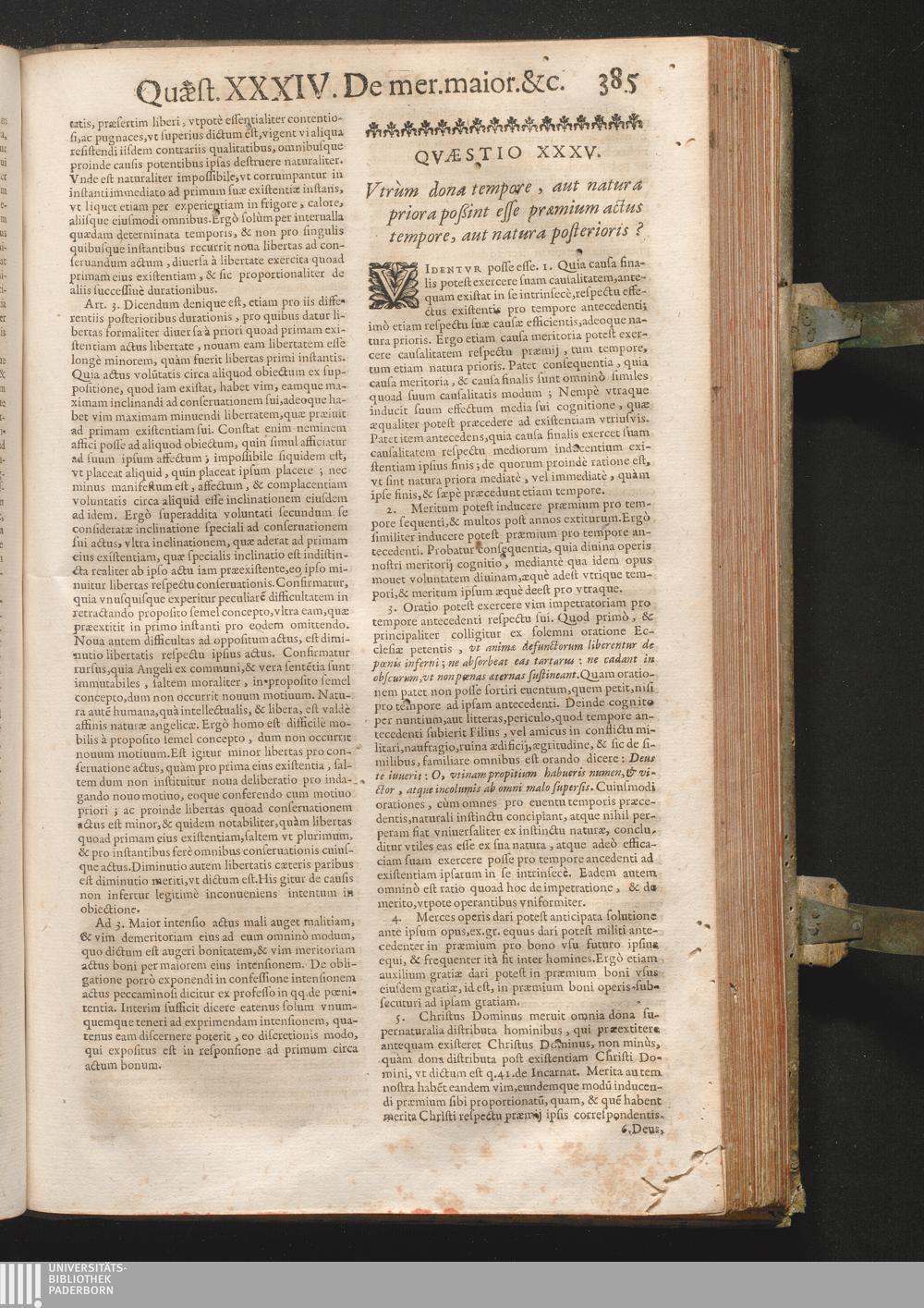 XXXV. Vtrum dona tempore, aut natura priora possint esse præmium actus tempore, aut[...]