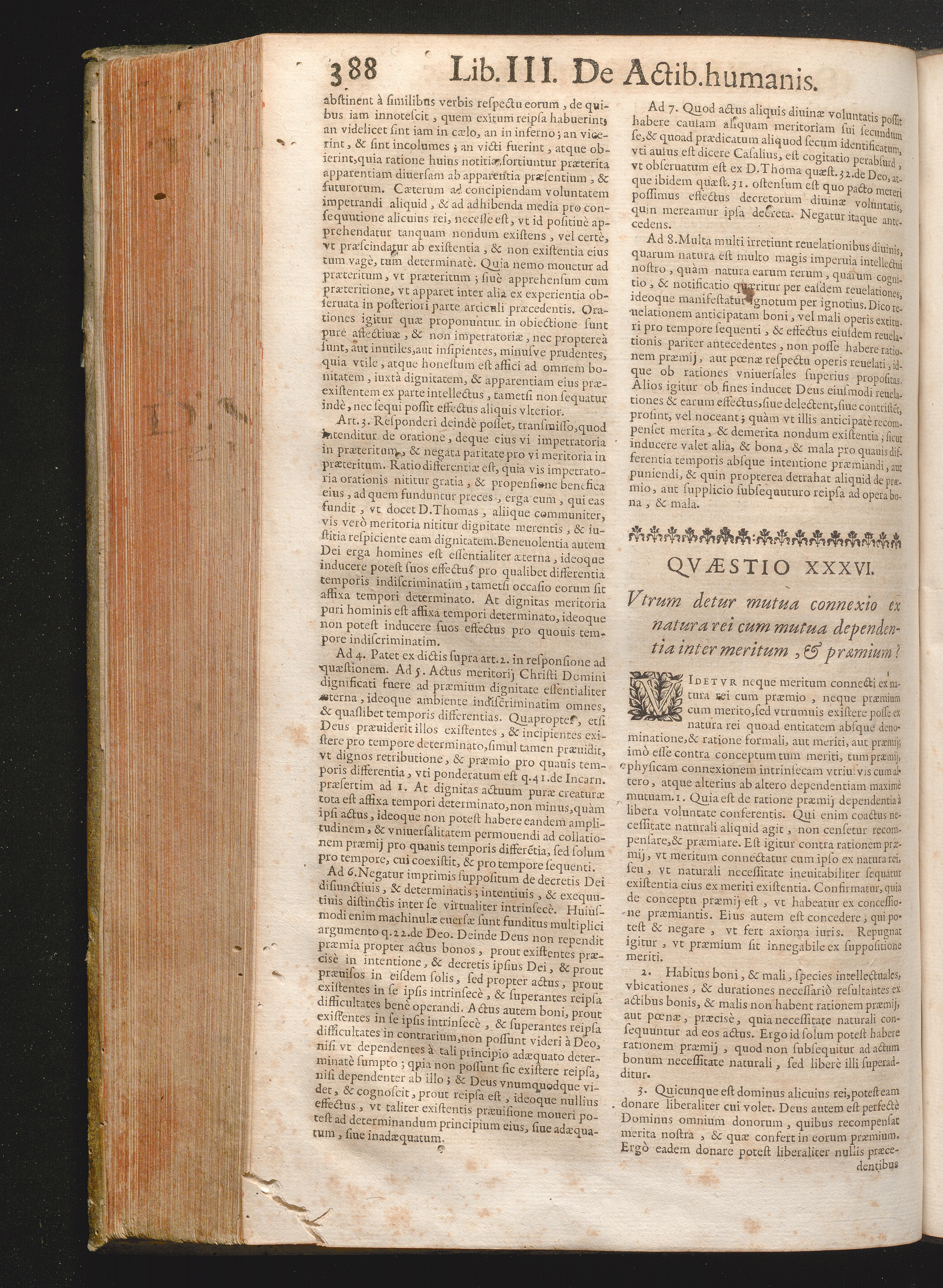 XXXVI. Vtrum detur mutua connexio ex natura rei cum mutua dependentia inter meritum,[...]