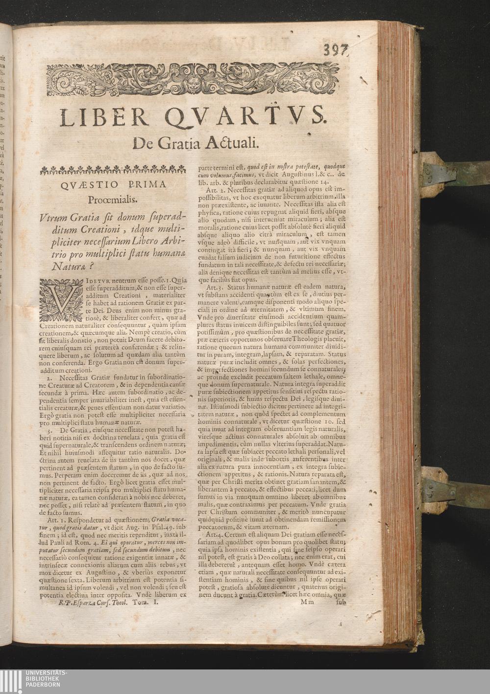 Qvæstio I. Vtrum Gratia sit donum superadditum creationi, idque multipliciter necessarium[...]
