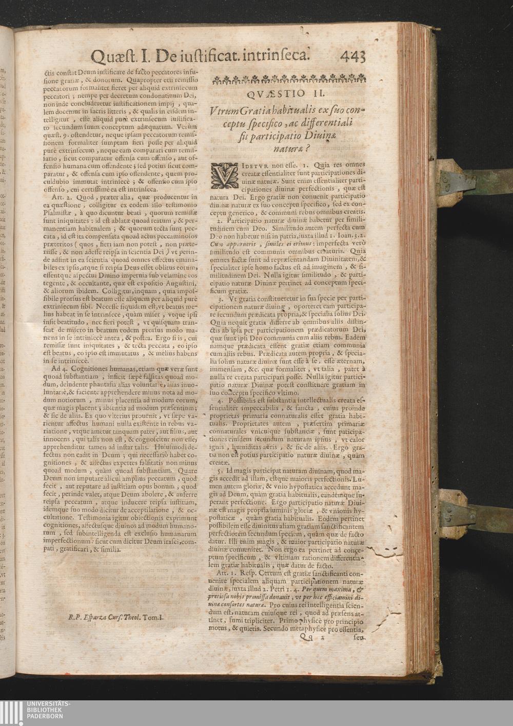 II. Vtrum Gratia habitualis ex suo conceptu specifico, ac differentiali sit participatio[...]