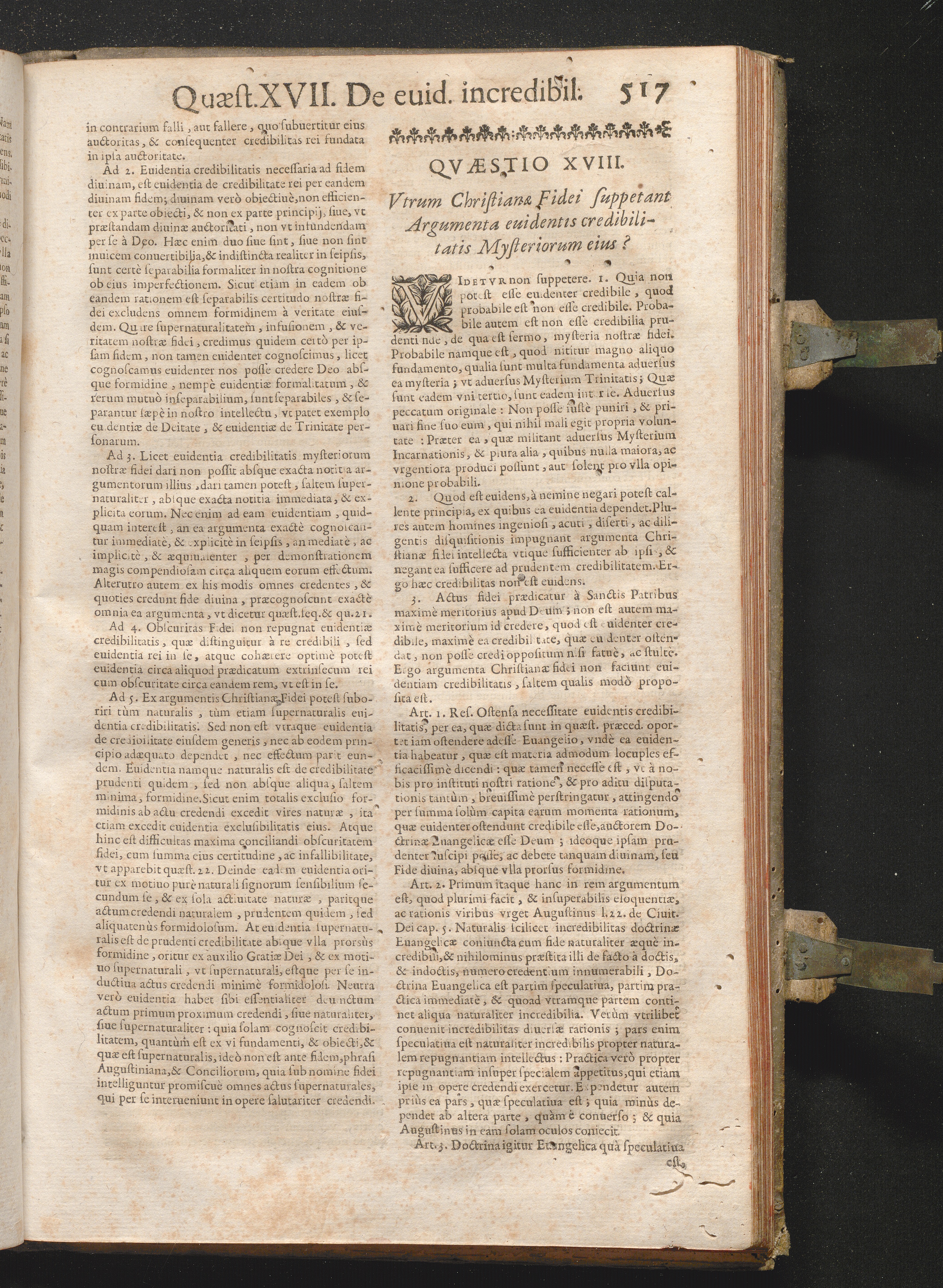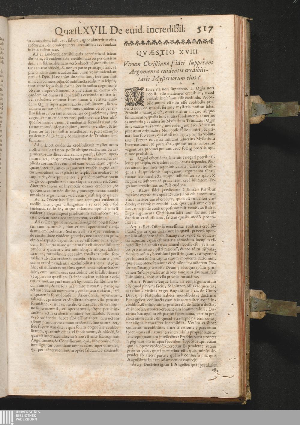 XVIII. Vtrum Christianæ Fidei suppetantargumenta euidentis credibilitatis Mysteriorum[...]