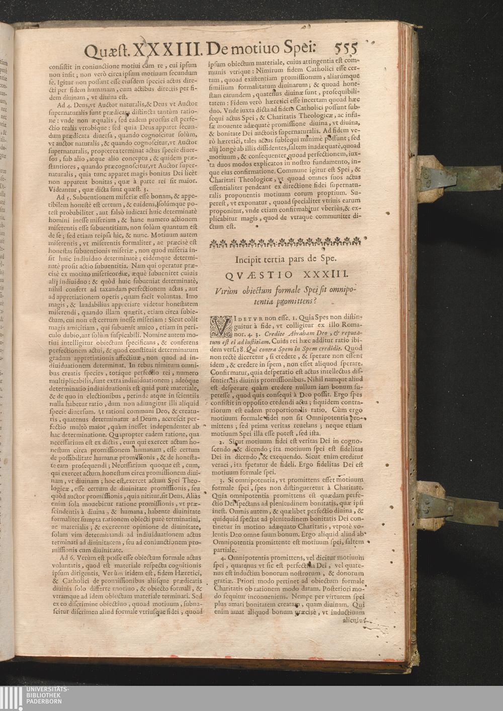 XXXIII. Vtrum obiectum formale spei sit omnipotentia promittens?