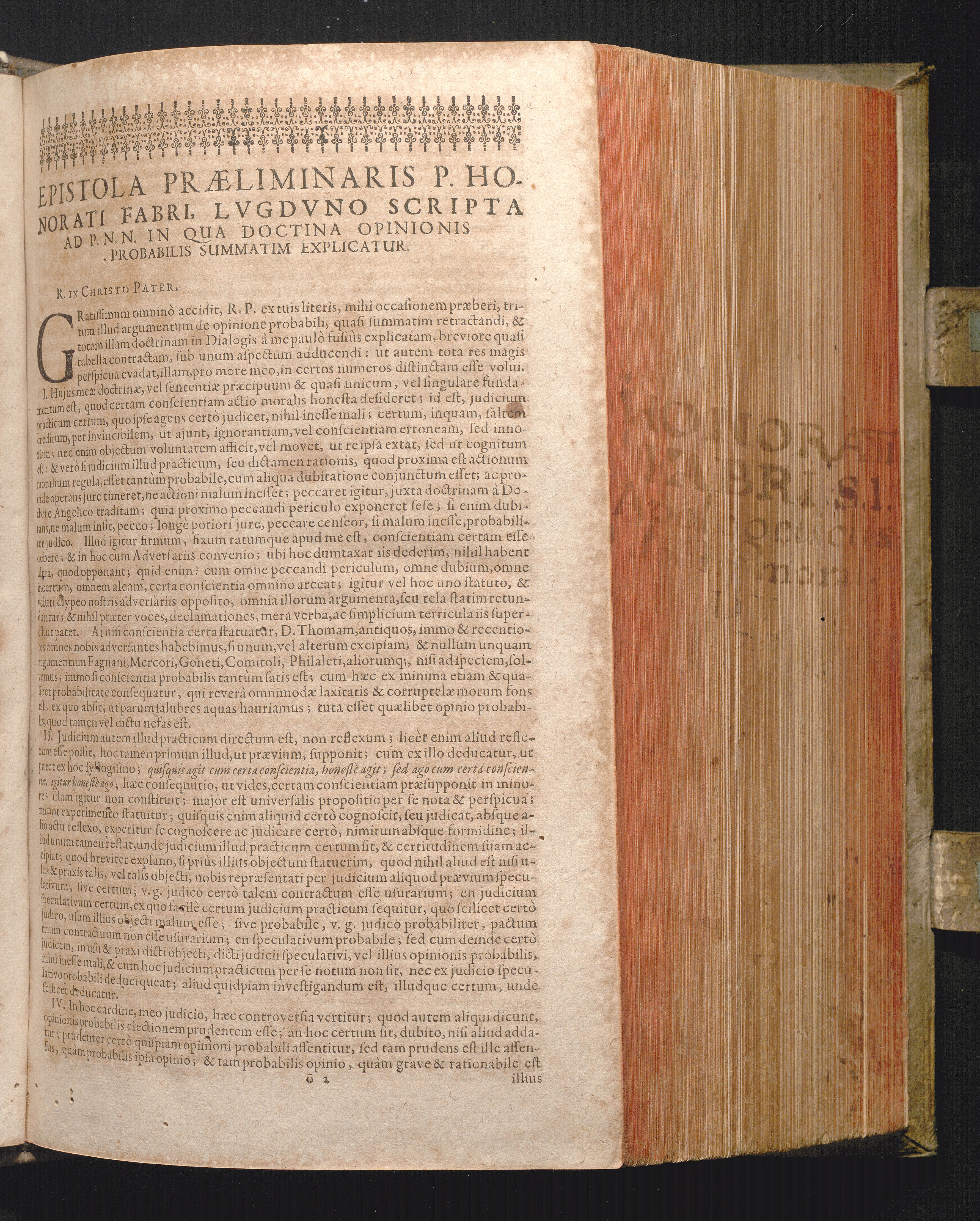 R. P. Honorati Fabri, Societatis Jesu Theologi, Apologeticus Doctrinæ Moralis Eiusdem Societatis : In Quo Variis Tractatibus, Diversorum Auctorum Opuscula confutantur; quorum nomina sequens Elenchus dabit; & selectæ quædam morales quæstiones discutiuntur ; In Duas Partes Commode Sectus: Cum Indicibus Tractatuum, & Rerum præcipuarum