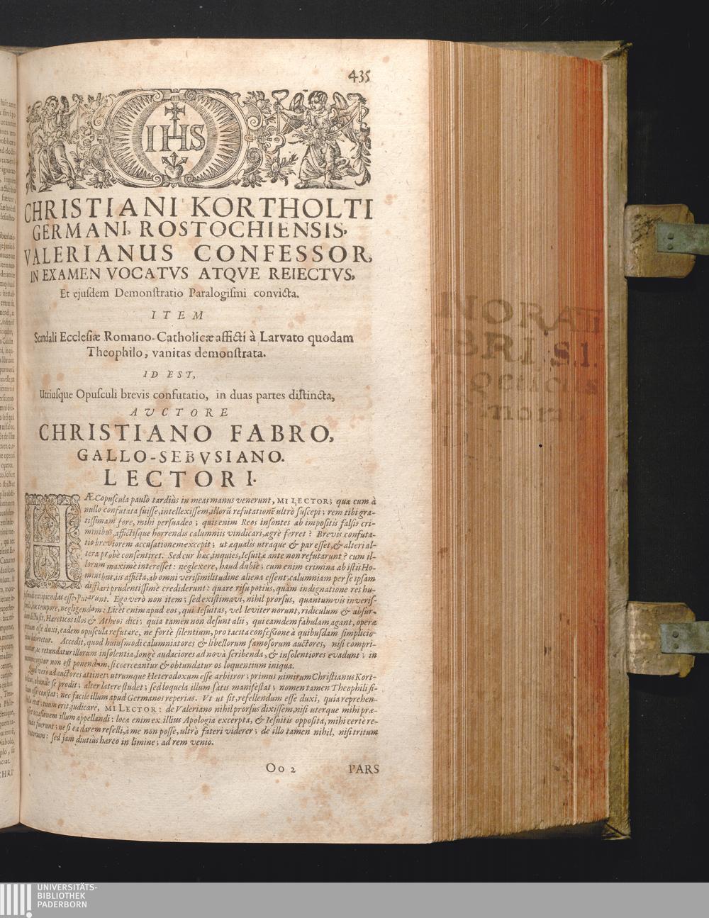 R. P. Honorati Fabri, Societatis Jesu Theologi, Apologeticus Doctrinæ Moralis Eiusdem Societatis : In Quo Variis Tractatibus, Diversorum Auctorum Opuscula confutantur; quorum nomina sequens Elenchus dabit; & selectæ quædam morales quæstiones discutiuntur ; In Duas Partes Commode Sectus: Cum Indicibus Tractatuum, & Rerum præcipuarum