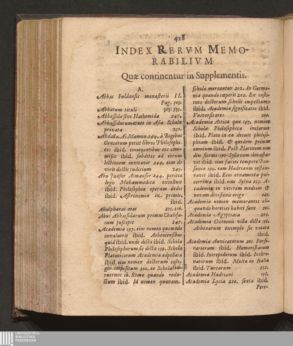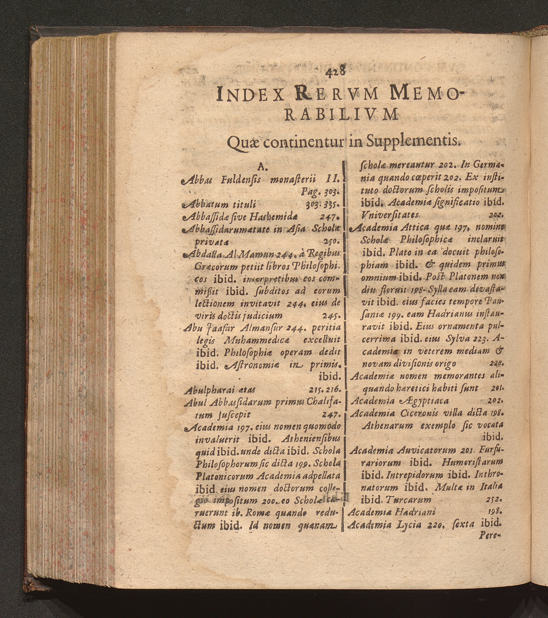 Index Rervm Memorabilivm Quæ continentur in Supplementis.