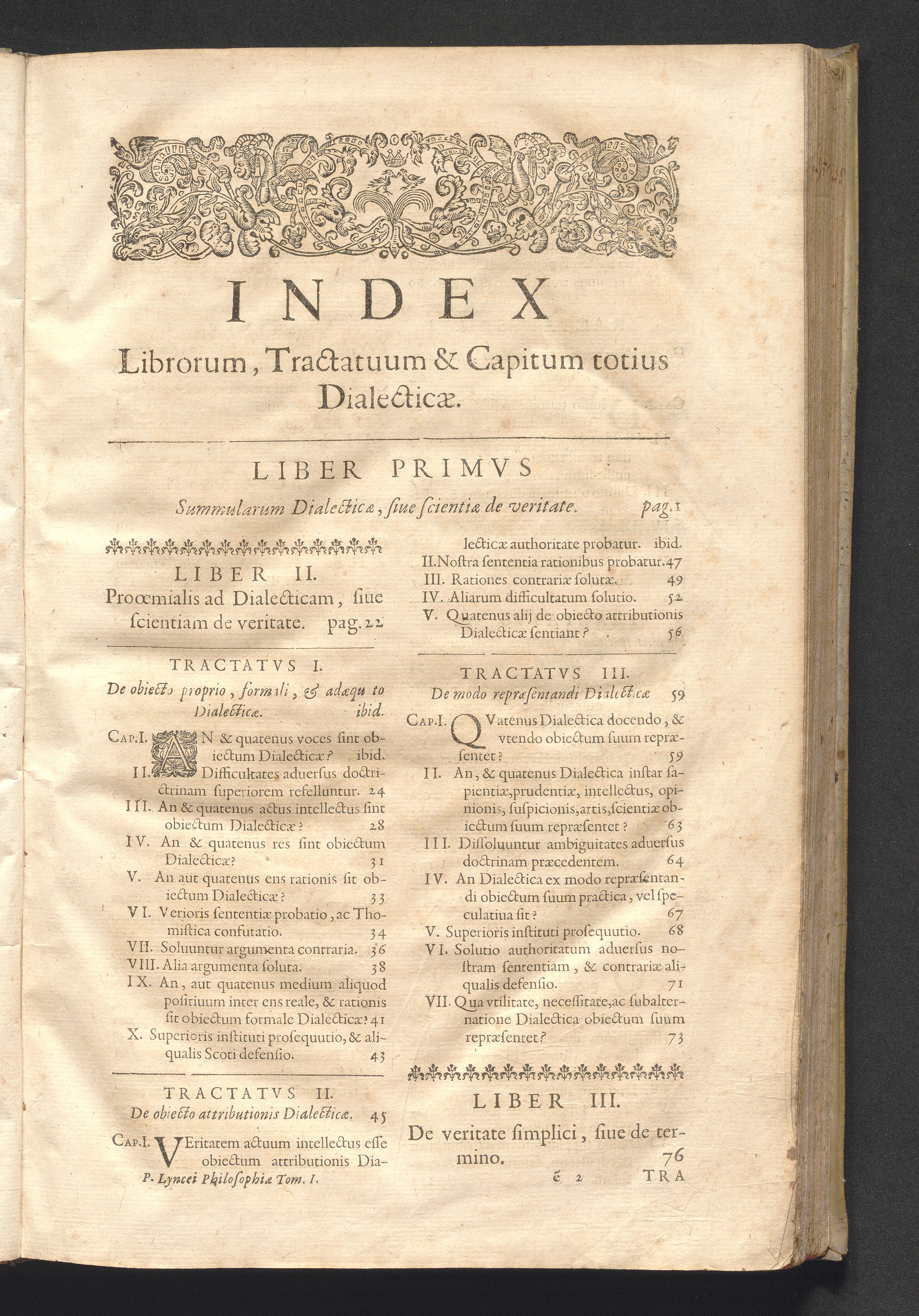 Index Librorum, Tractatuum & Capitum totius Dialecticæ.