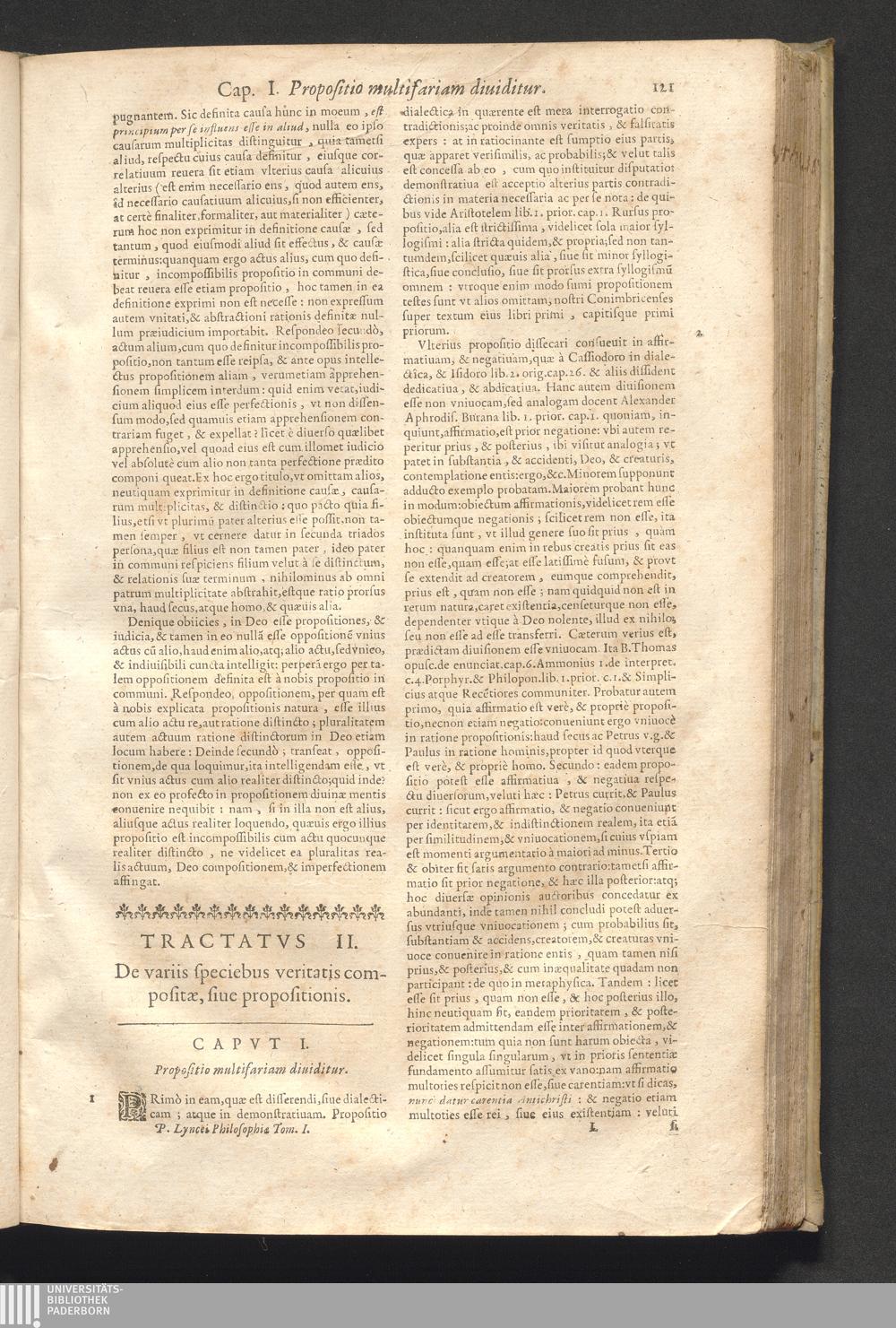 Tractatvs II. De variis speciebus veritatis compositæ, siue propositionis.