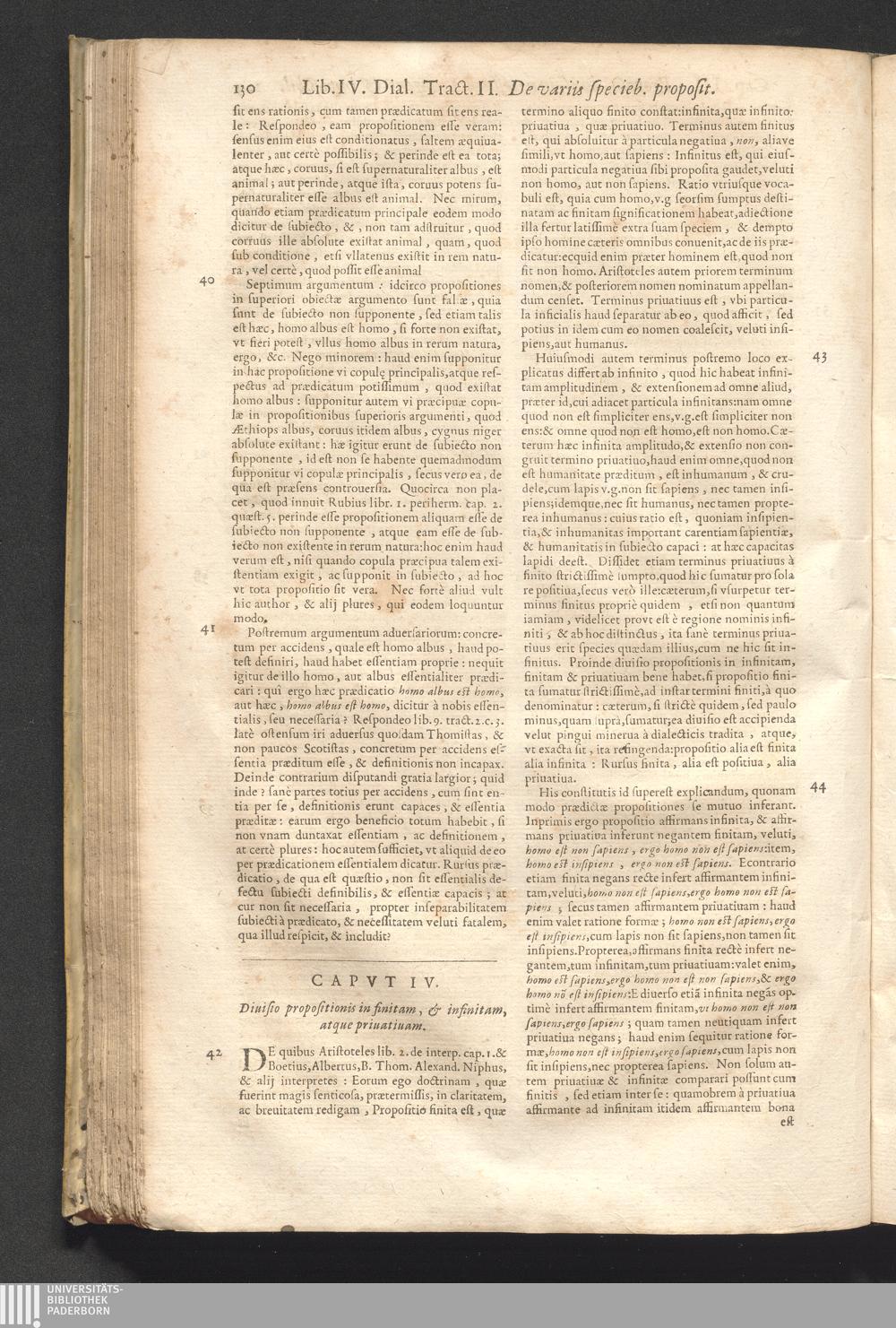 IV. Diuisio propositionîs in finitam, & infinitam, atque priuatiuam.