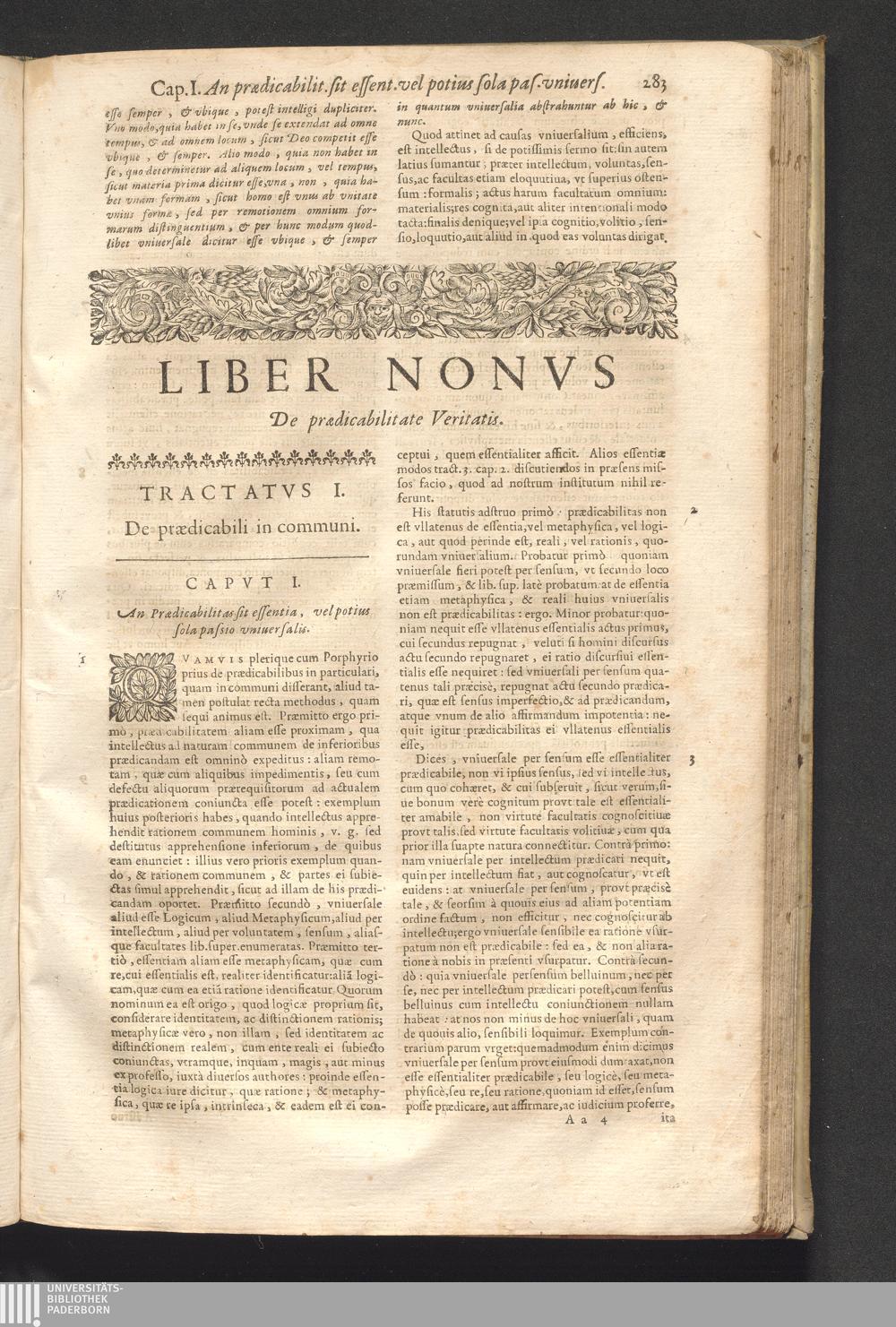Cap. I. An prædicabilitas, sit essentia, vel potius propria passio vniuersalis.