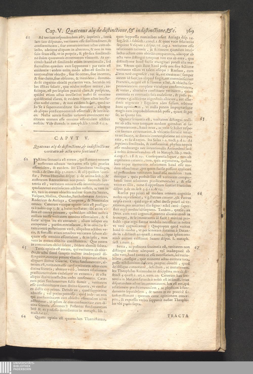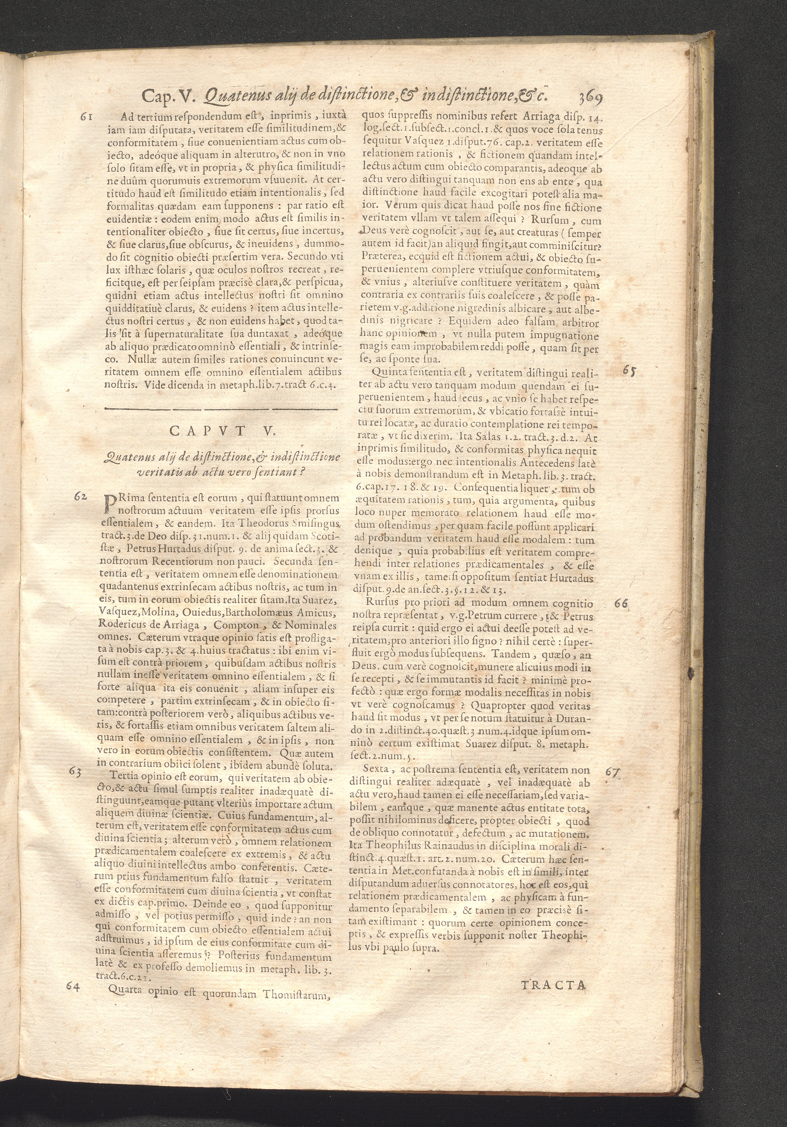 V. Quatenus alij de distinctione, & indistinctione veritatis ab actu vero sentie[...]