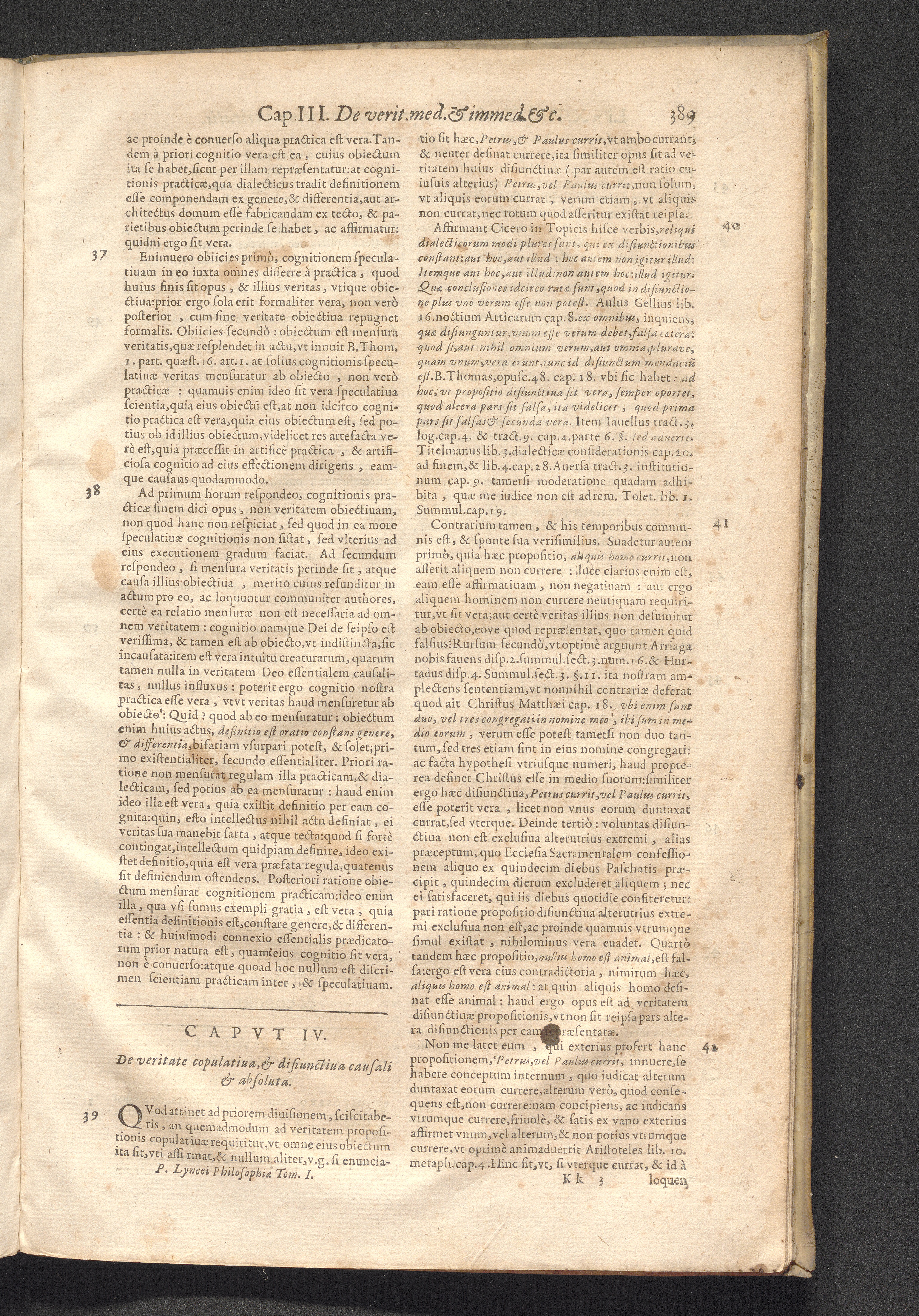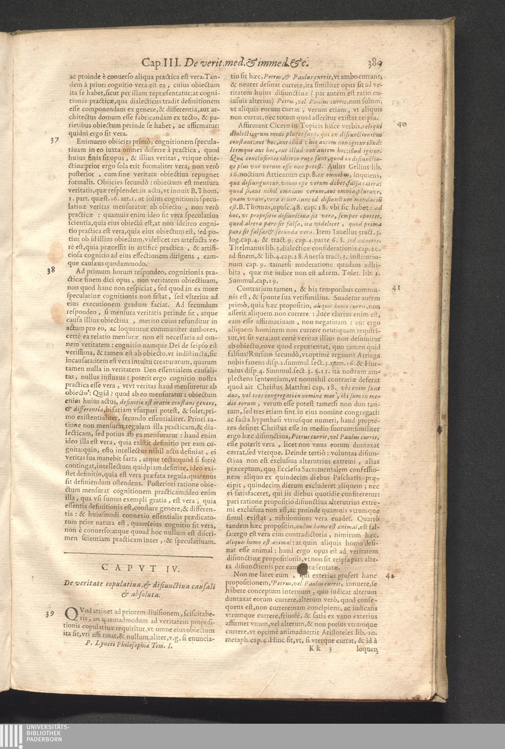 IV. De veritate copulatiua, & disiunctiua, causali, & absoluta.