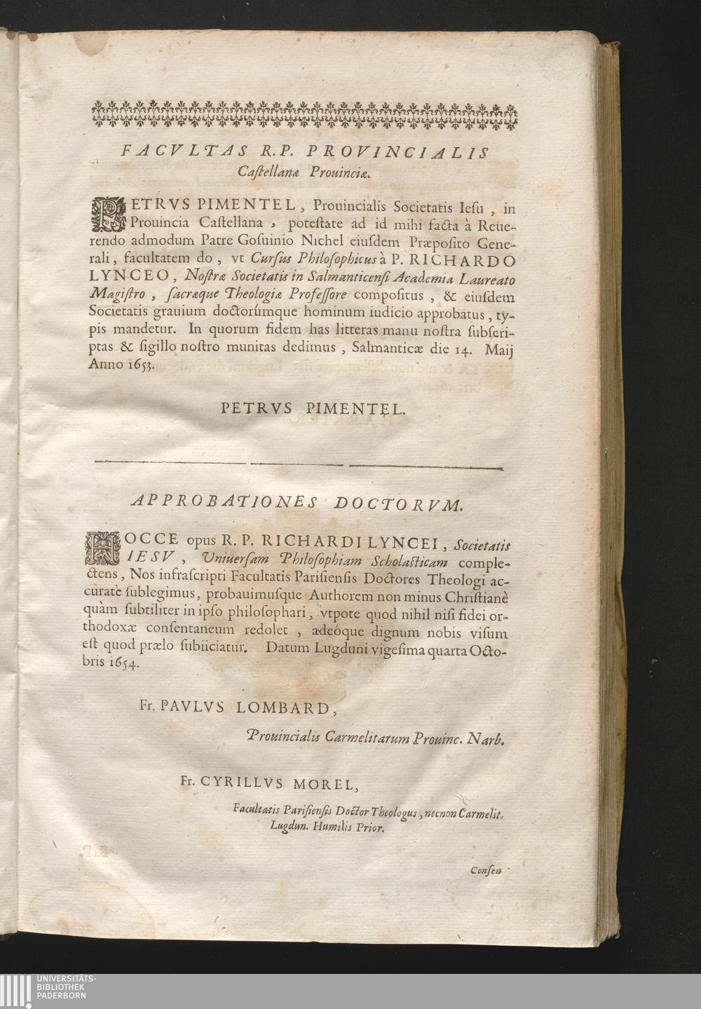 3 (1654) Complectens Metaphysicam, id est, Scientiam de Ente incorporeo, seu transnaturali