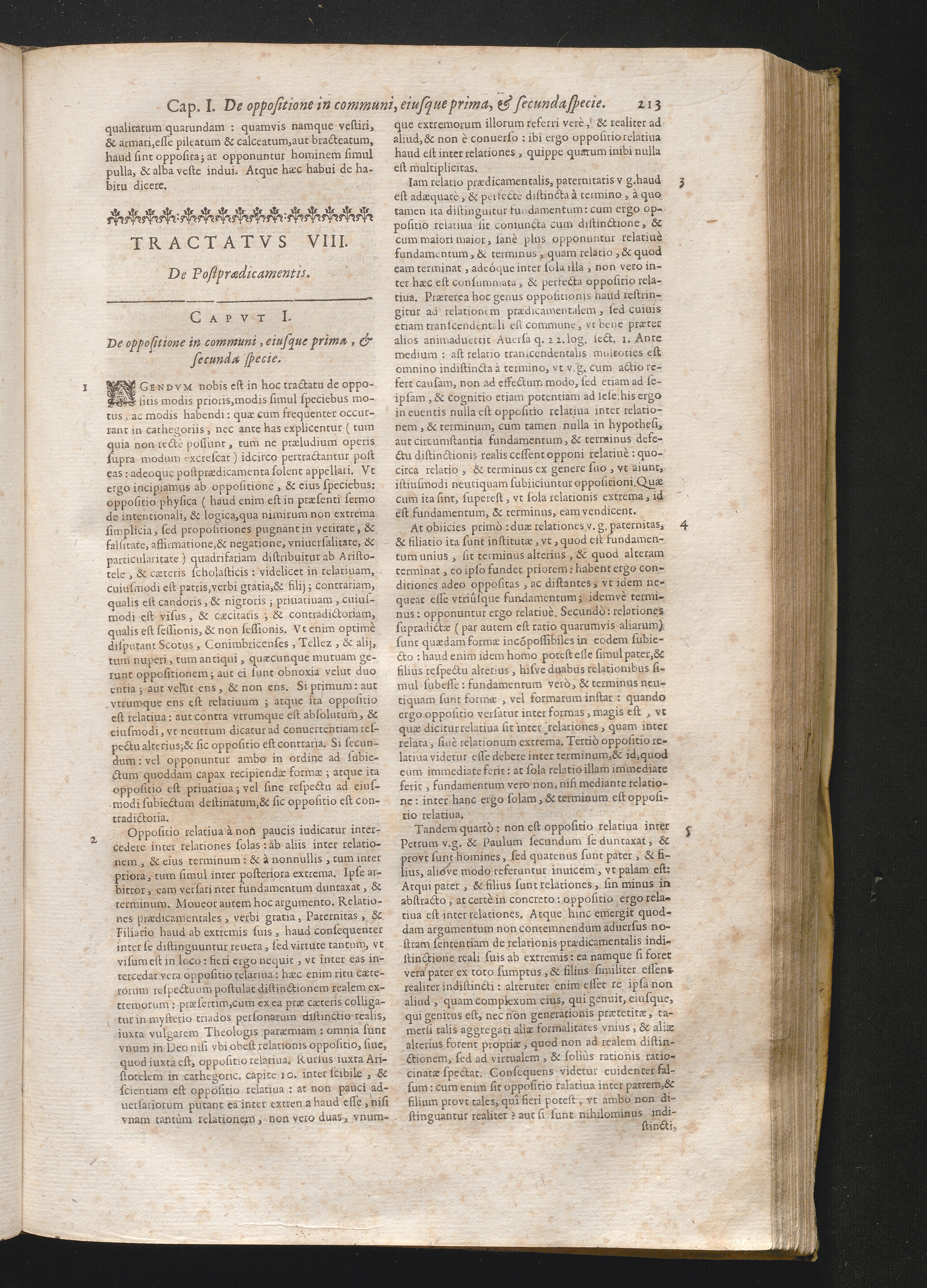 Cap. I. De oppositione in communi eiusque prima, & secunda specie.