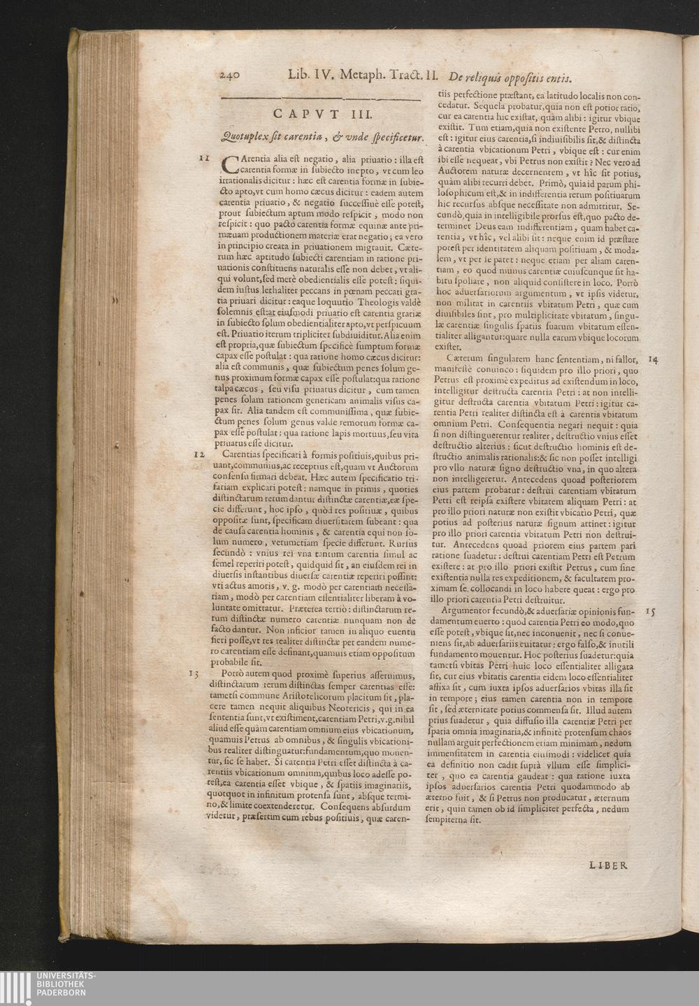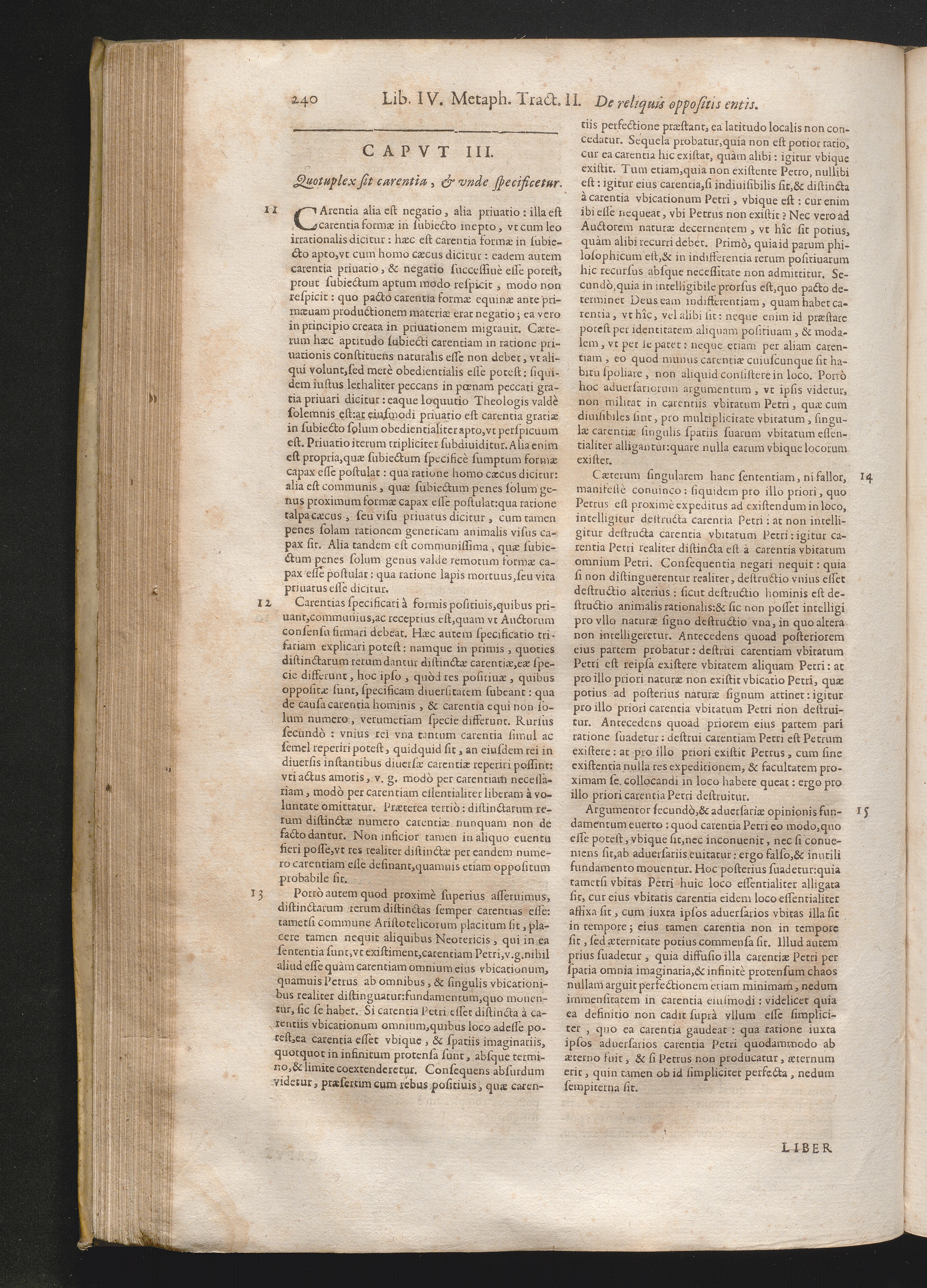 III. Quotuplex sit carentia, & vnde specificetur.