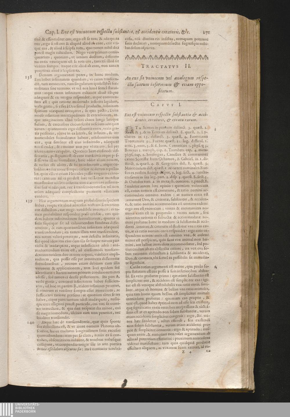 Tractatvs II. An ens sit vniuocum vel analogum respectu suorum inferiorum, & etiam[...]