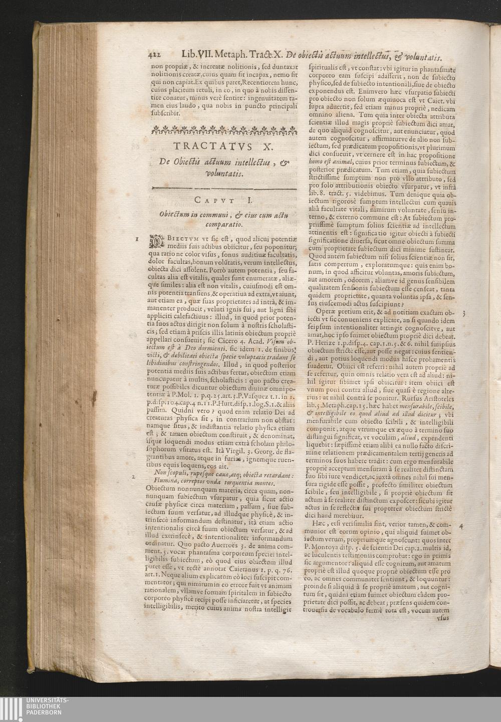 Cap. I. Obiectum in communi, & eius cum actu comparatio.