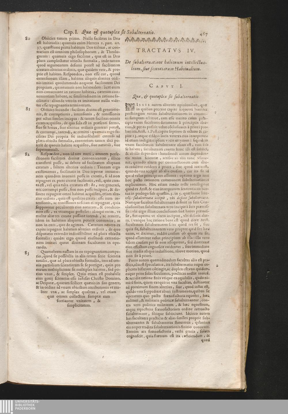 Tactatvs IV. De subalternatione habituum intellectualium, siue scientiam habitua[...]