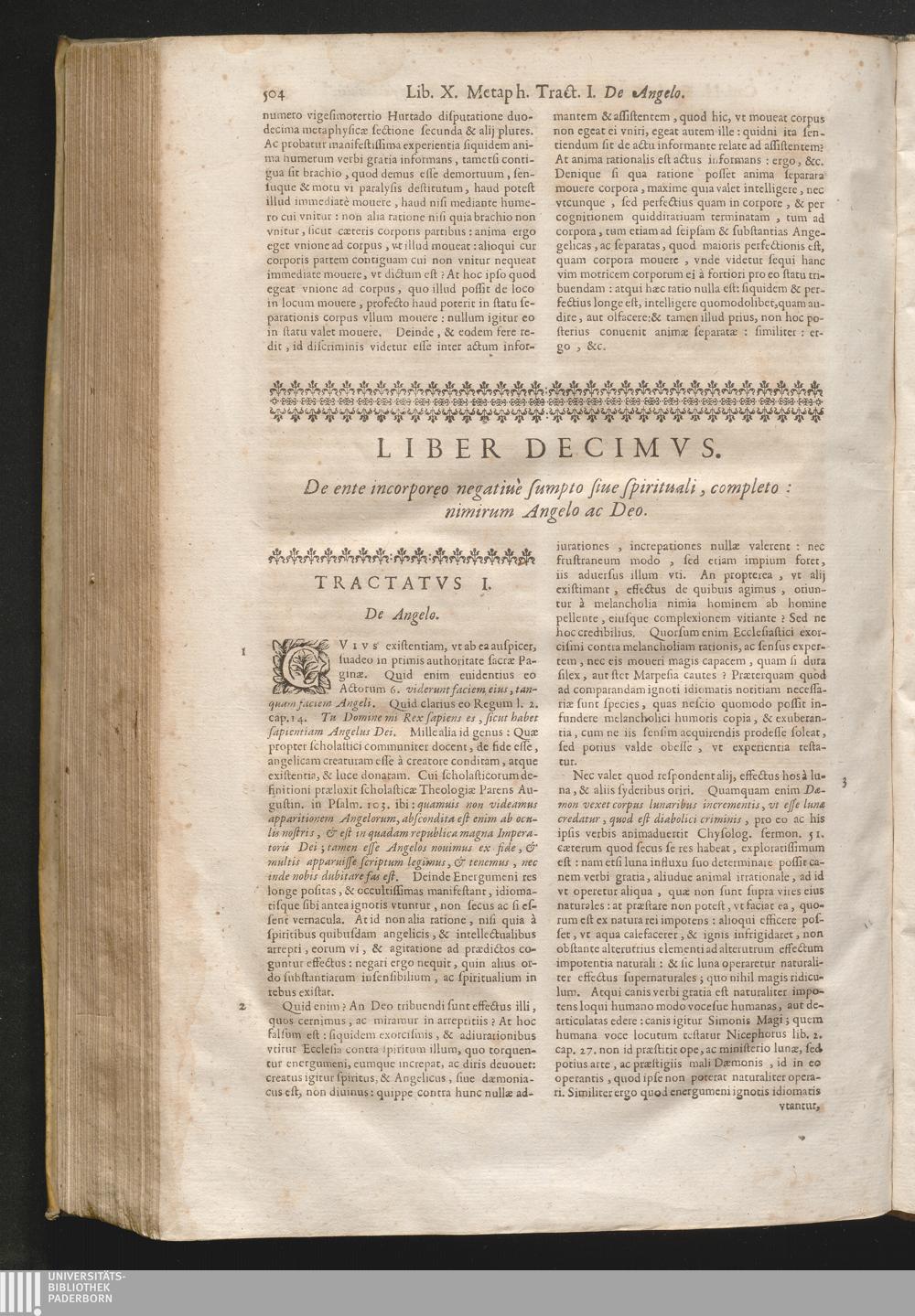 Liber X. De ente incorporeo negatiuè sumpto, siue spirituali completo; nimirum Angelo,[...]