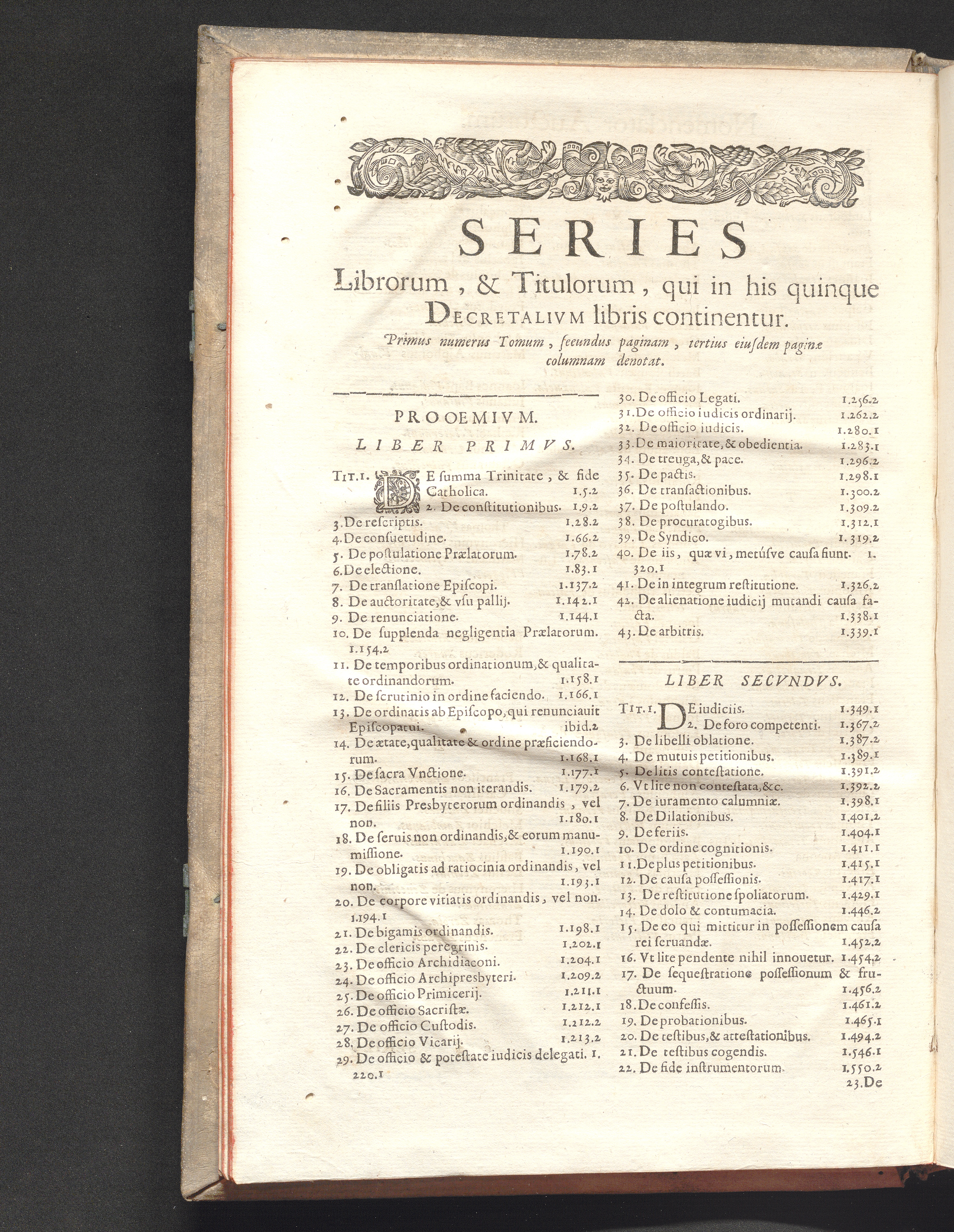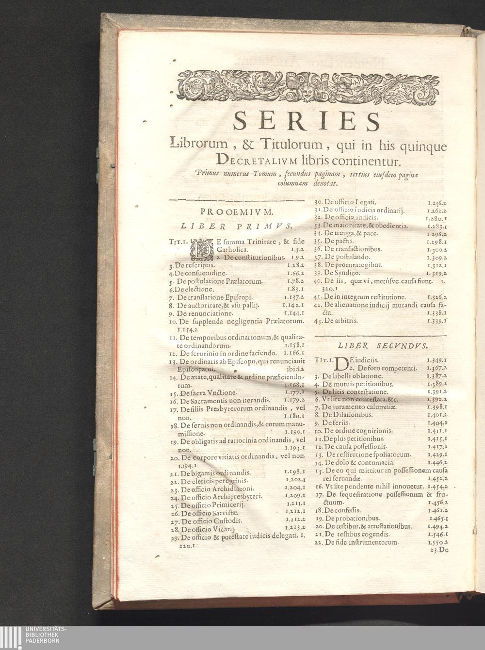 Series Librorum, & Titulorum, qui in his quinque Decretalivm libris continentur.[...]