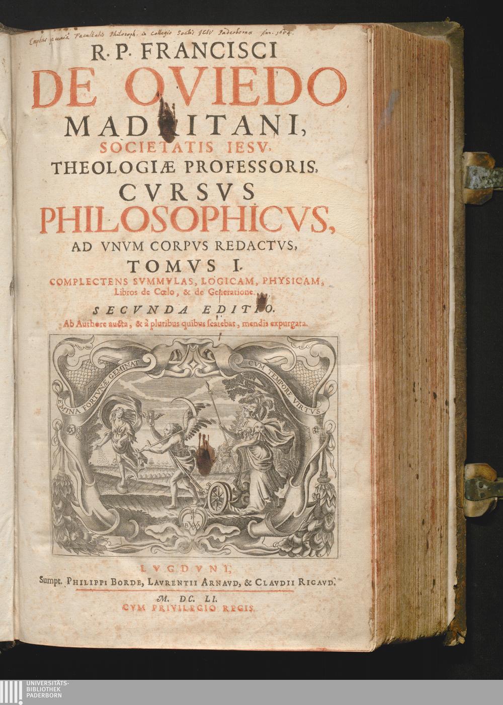 1 (1651) R. P. Francisci De Oviedo Madritani, Societatis Iesv, Theologiæ Professoris, Cvrsvs Philosophicvs : Ad Vnvm Corpvs Redactvs