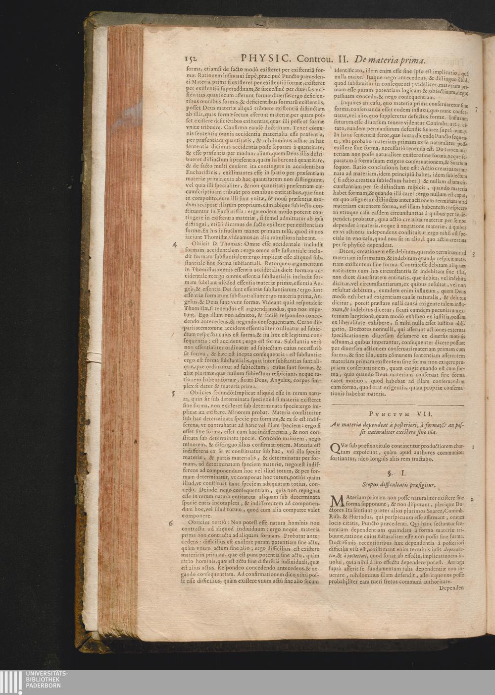 VII. An materia dependeat à posteriori à forma, & an poßit naturaliter existere sine[...]