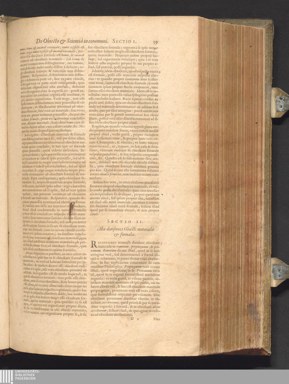 Sect. II. Aliæ diuisiones Obiecti materialis & formalis.