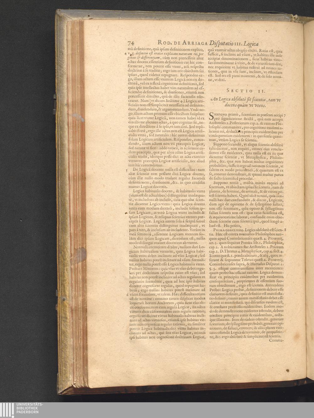 Sect. II. An Logica absolutè sit scientia, tam ut docens quàm vt vtens.