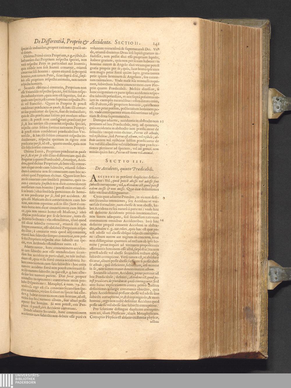 Sect. III. De Accidenti, quinto Prædicabili.