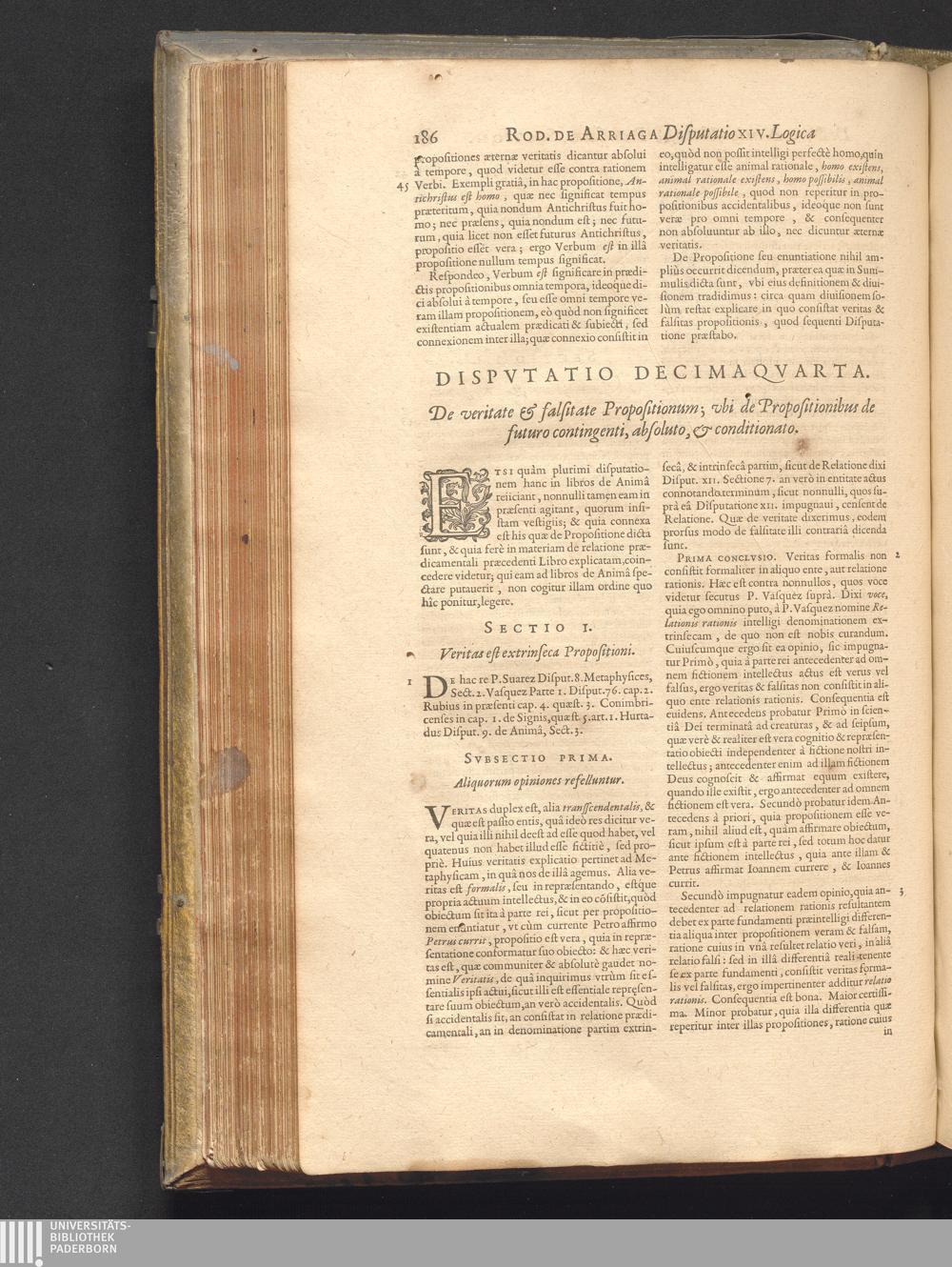 Dispvtatio XIV. De veritate & falsitate Propositionum; vbi de Propositionibus de[...]