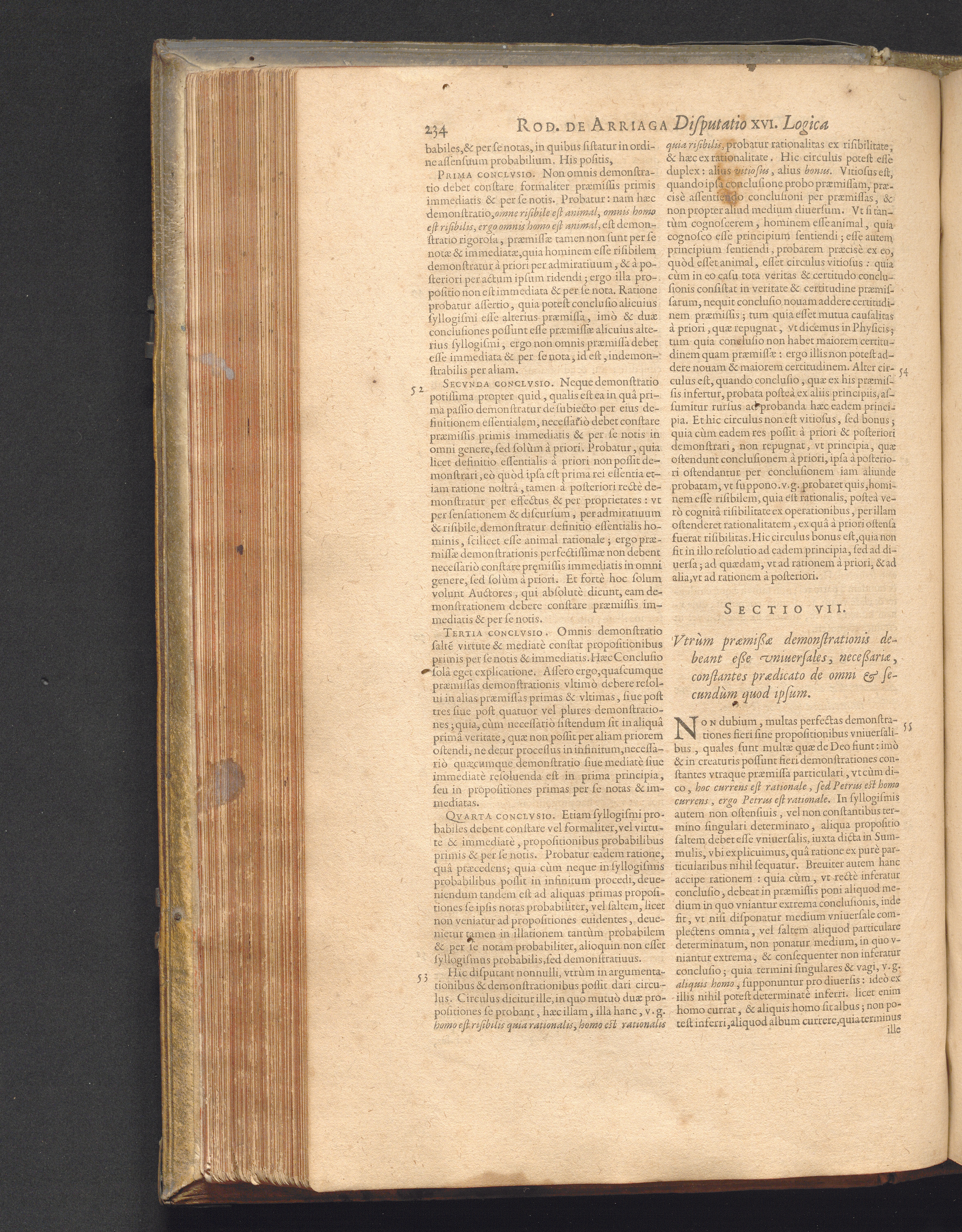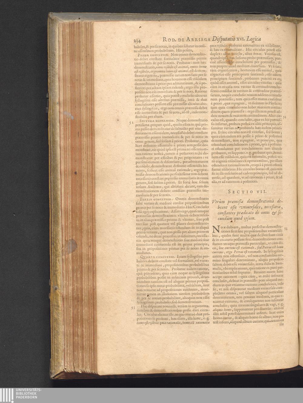 Sect. VII. Vtrùm præmissæ demonstrationis debeant esse vniuersales, necessariæ, constantes[...]