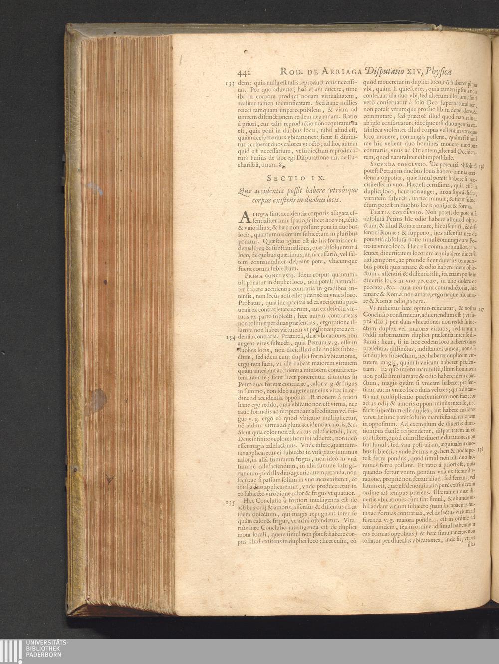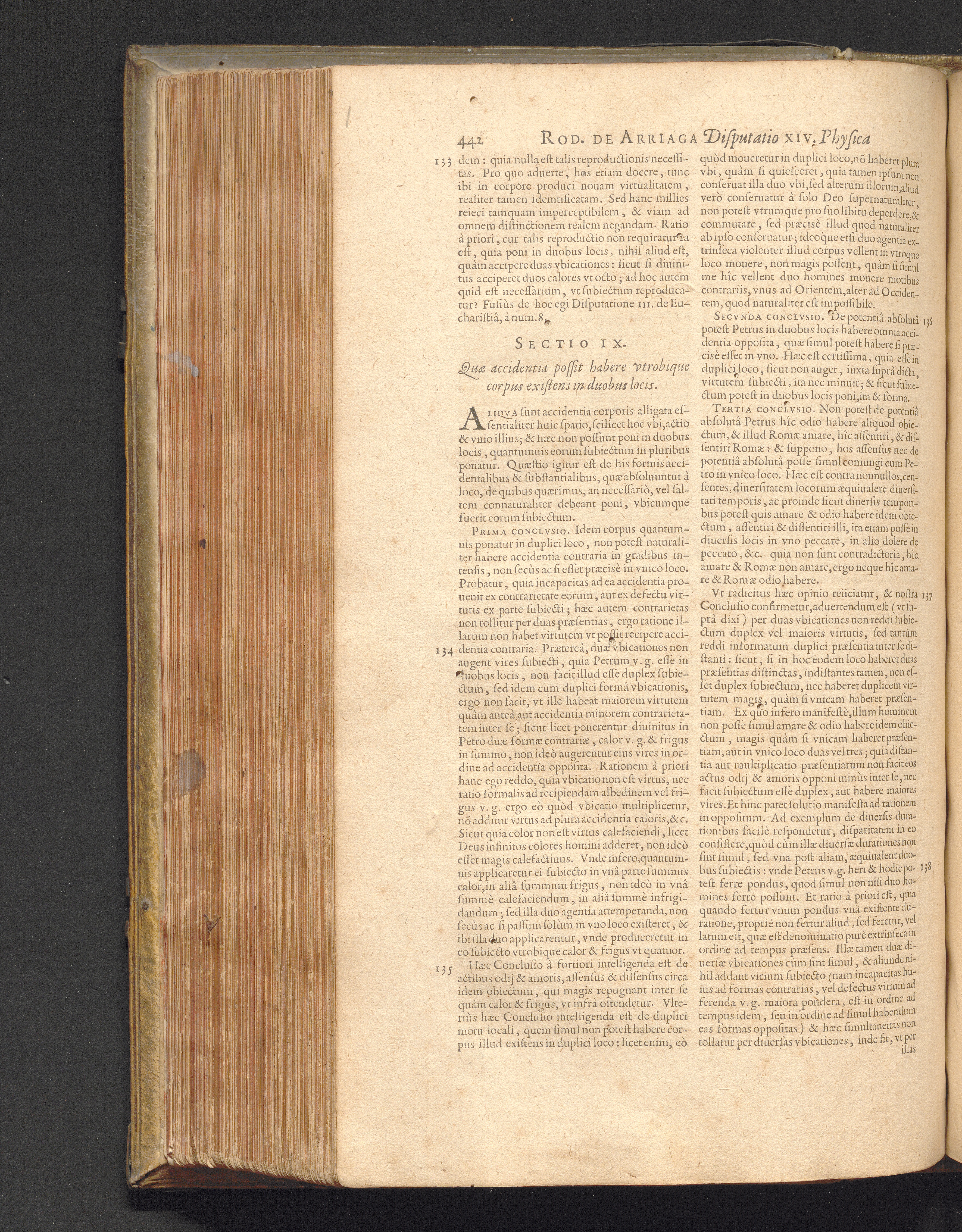 Sect. IX. Quæ accidentia poßit habere vtrobique corpus existens in duobus locis.