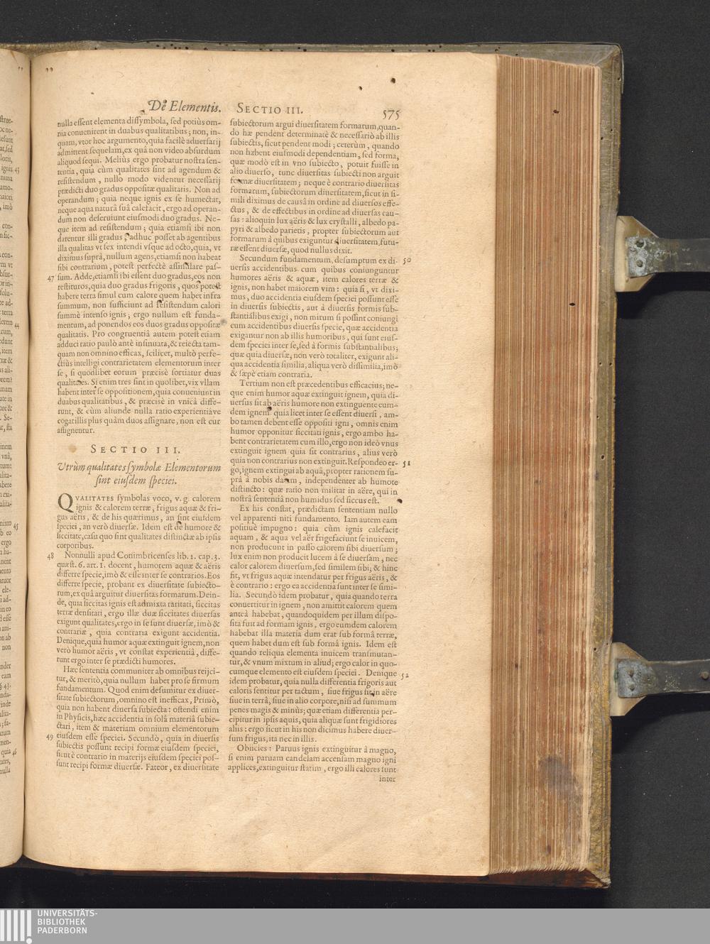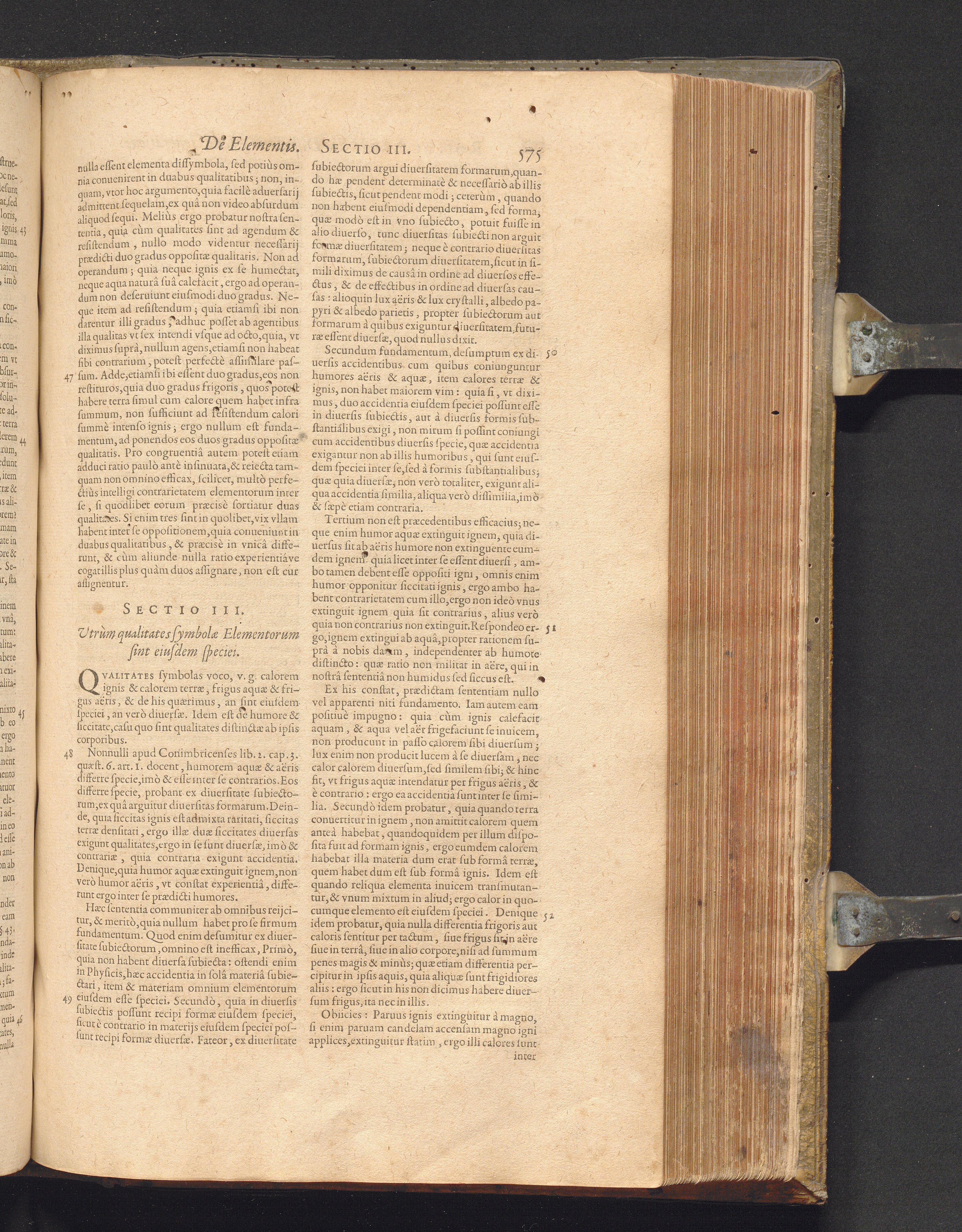 Sect. III. Vtrùm qualitates symbolæ Elementorum sint eiusdem speciei.