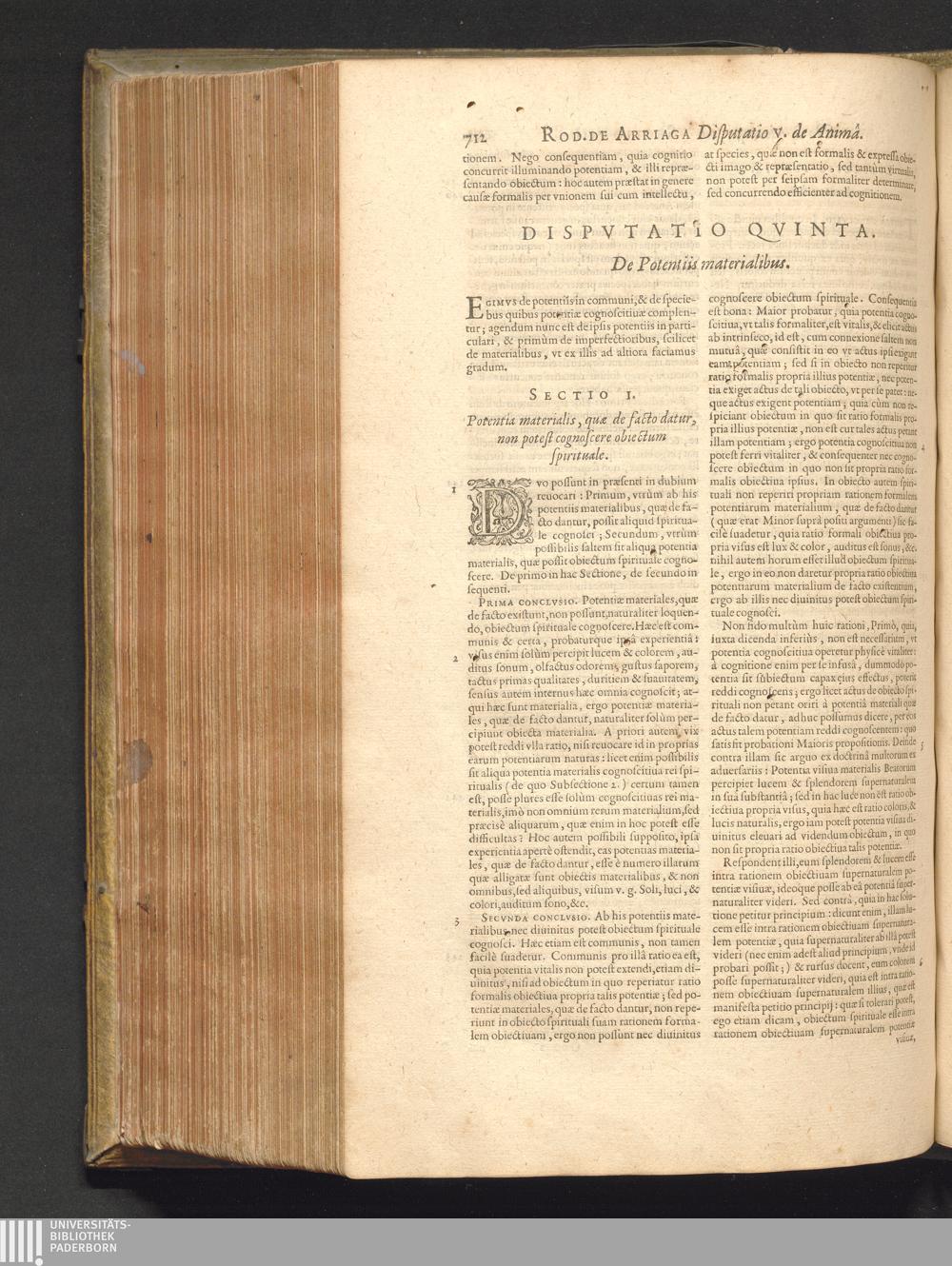 Sect. I. Potentia materialis, quæ de facto datur, non potest cognoscere obiectum[...]