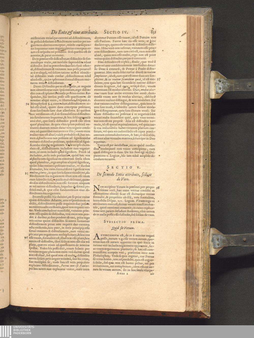 Sect. V. De secundo Entis attributo, scilicet de Vero.
