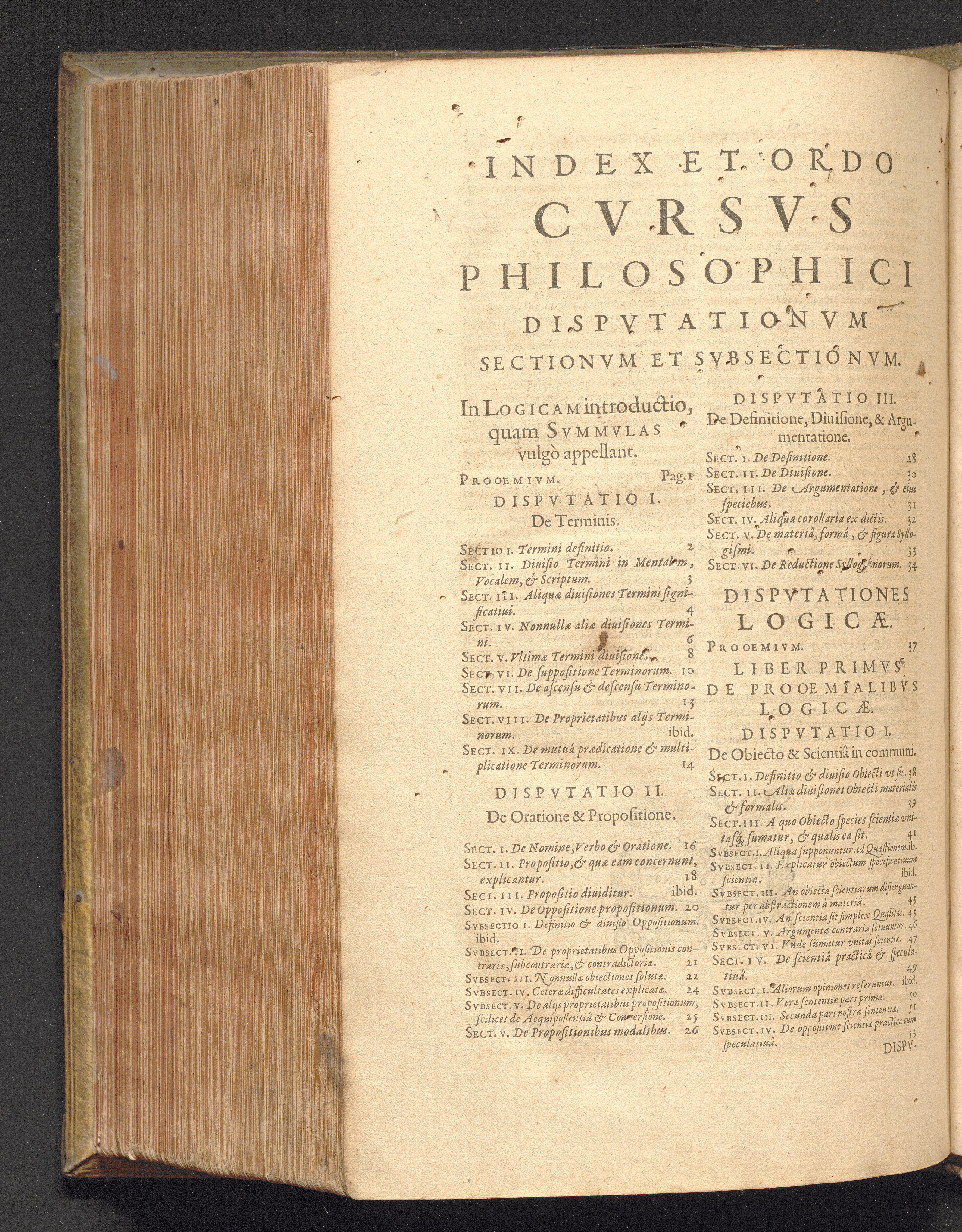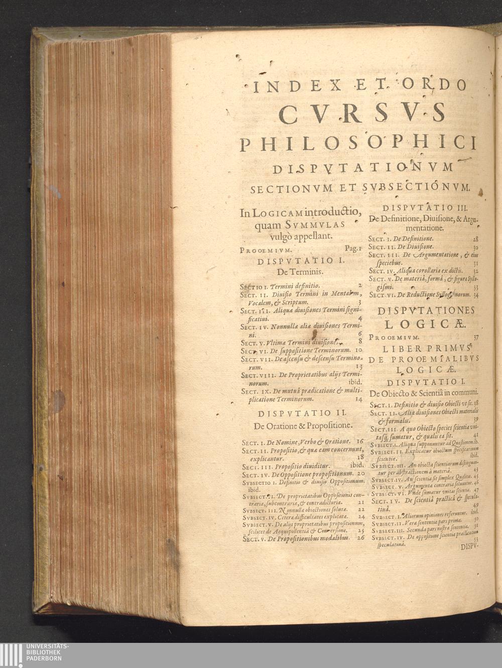 Index Et Ordo Cvrsvs Philosophici Dispvtationvm Sectionvm Et Svbsectionvm.