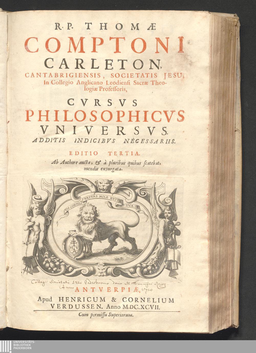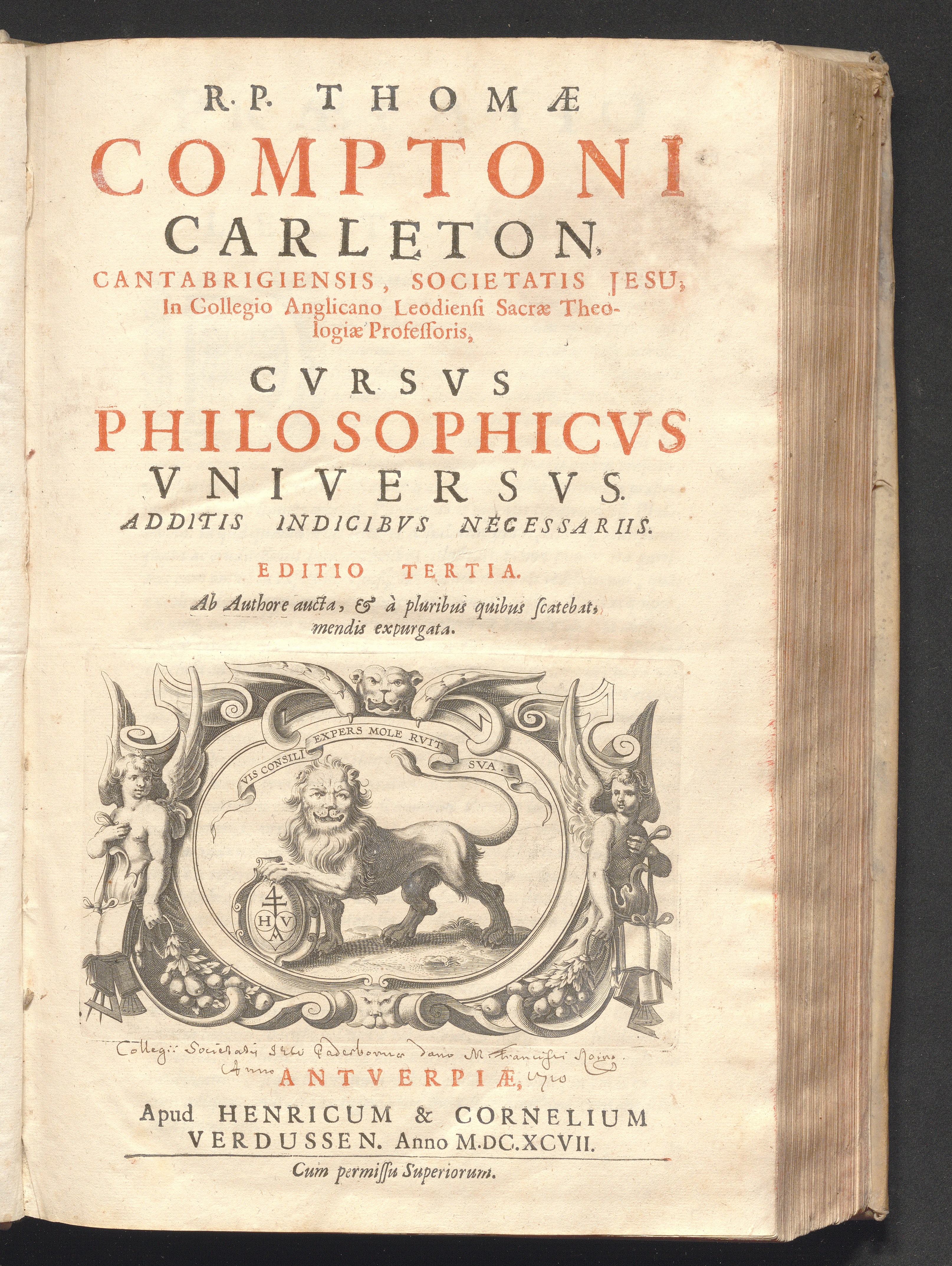 R. P. Thomæ Comptoni Carleton, Cantabrigiensis, Societatis Jesu, In Collegio Anglicano Leodiensi Sacræ Theologiæ Professoris, Cvrsvs Philosophicvs Vniversvs : Additis Indicibvs Necessariis