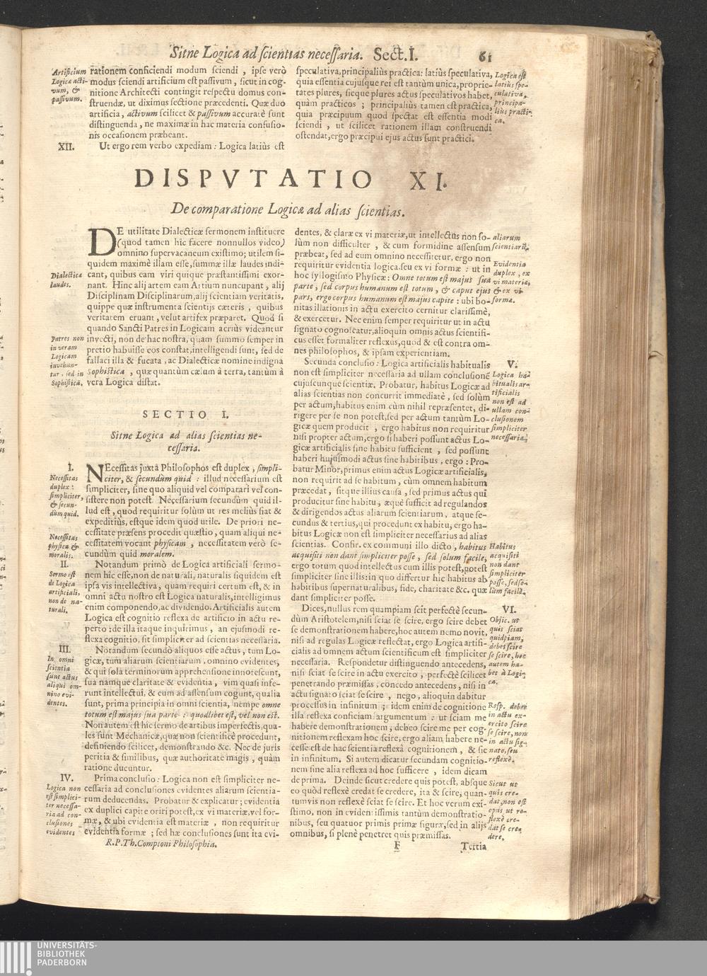 Dispvtatio XI. De comparatione Logicӕ ad alias scientias.