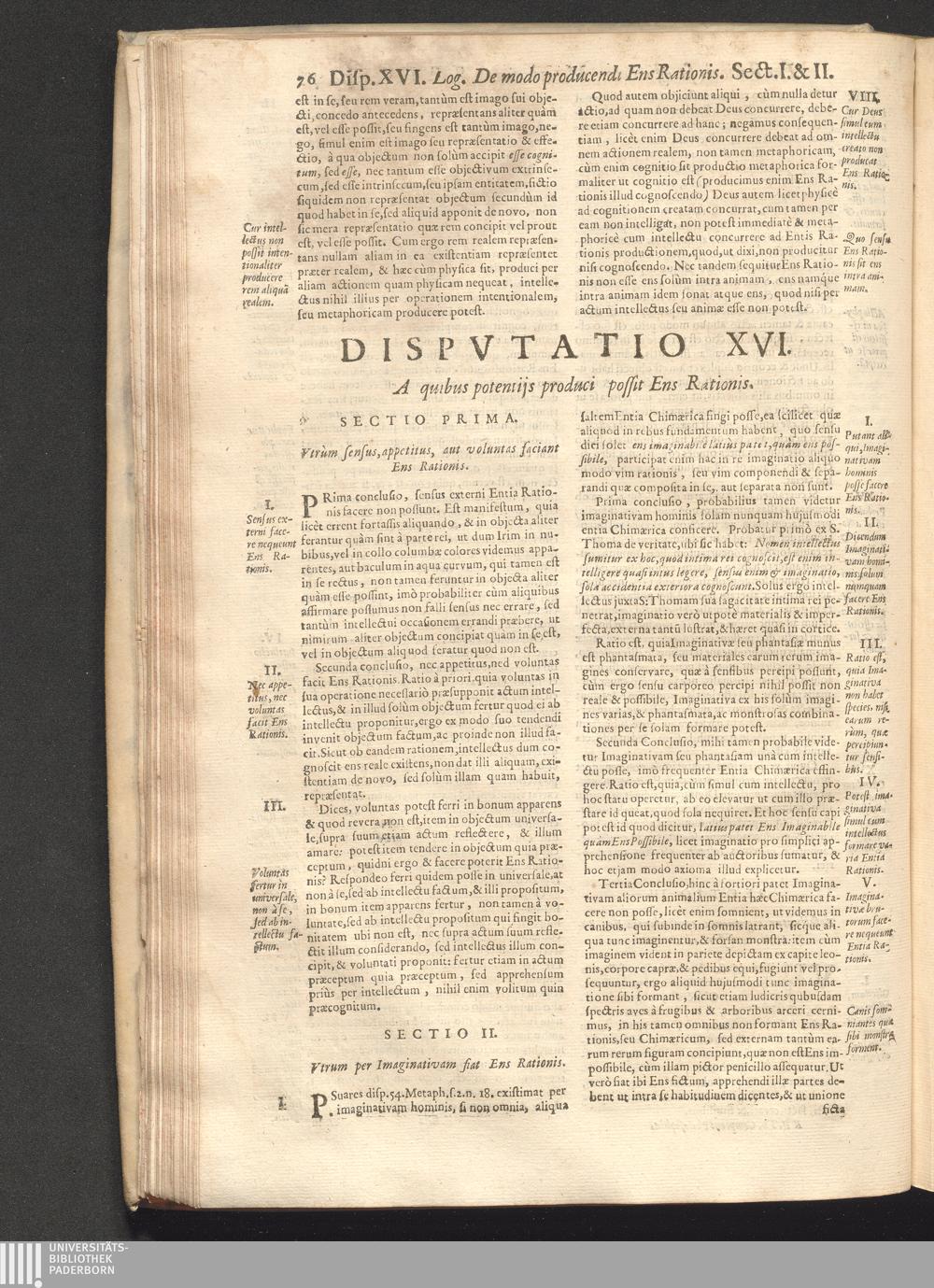 Dispvt. XVI. A quibus potentiis produci possit Ens Rationis.