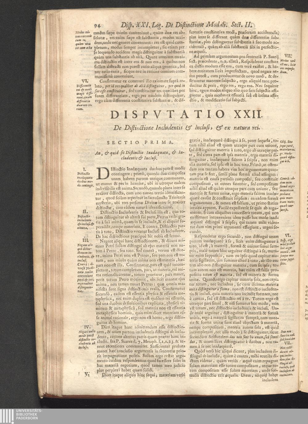 Disputat. XXII. De Distinctione Includentis & Inclusi, & ex natura rei.