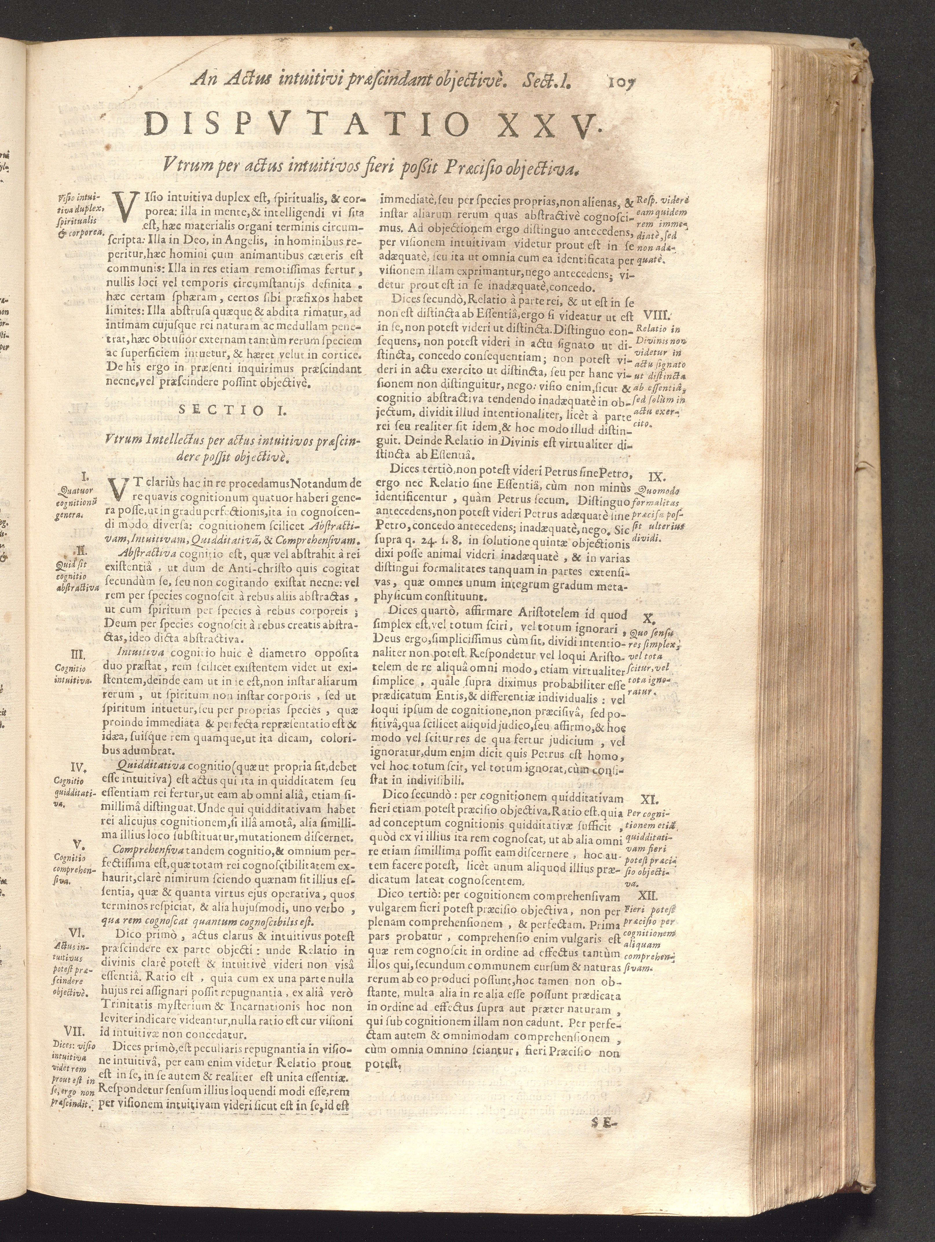 Disputatio XXV. Vtrum per actus intuitivos fieri possit Prӕcisio Objectiva.