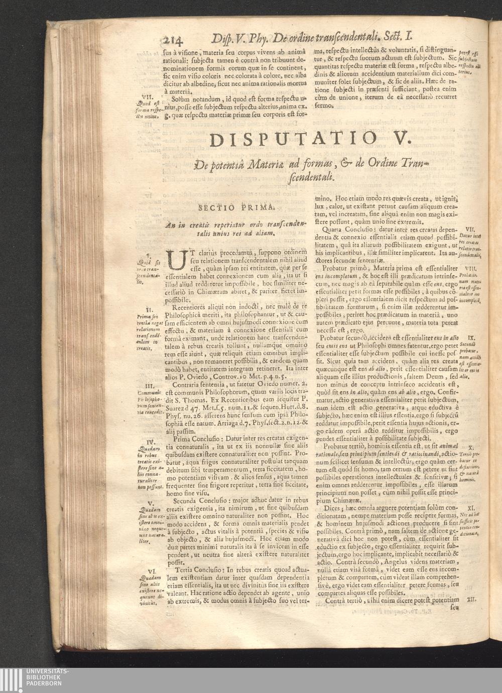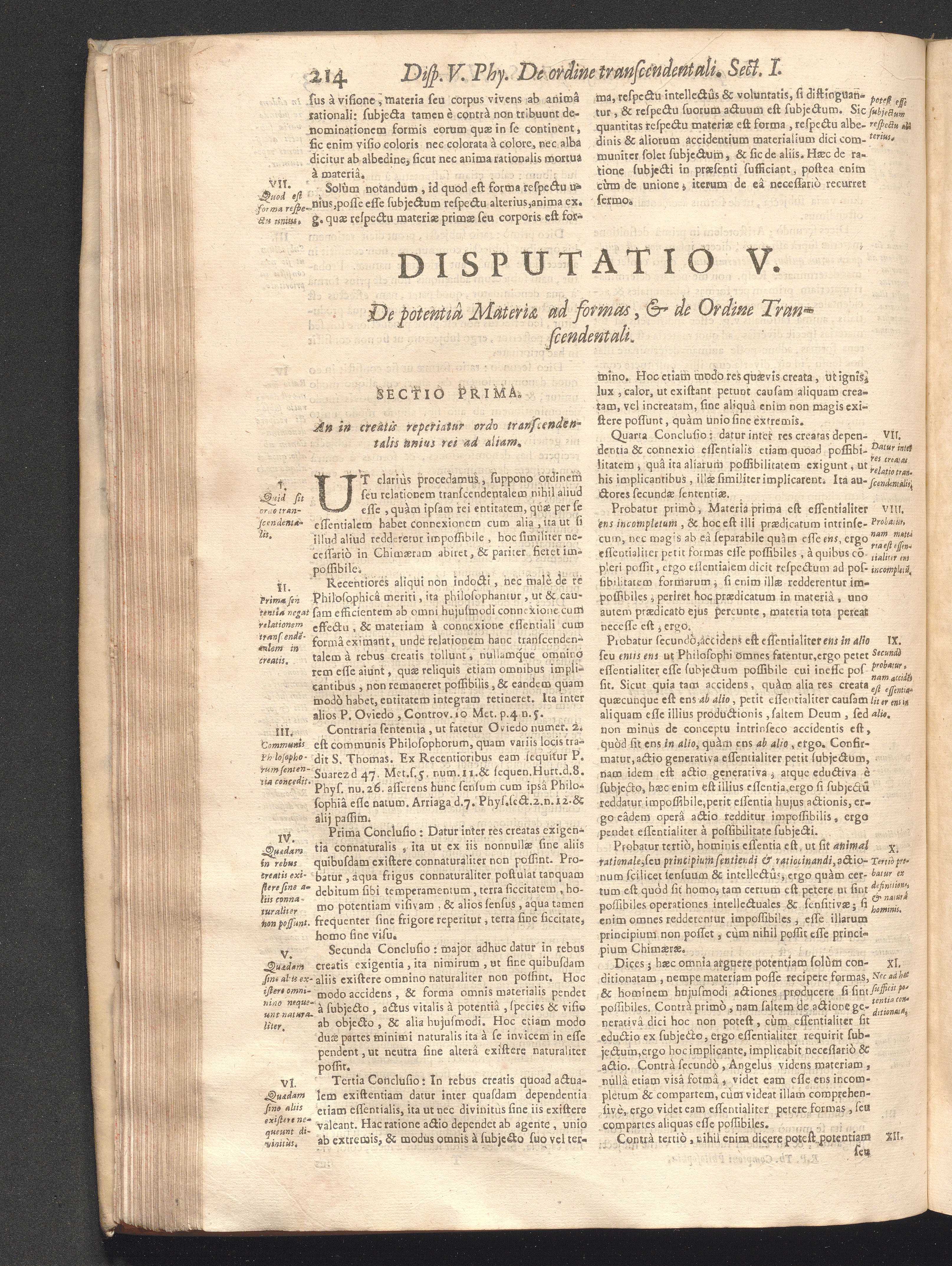 Dispvtat. V. De potentia Materiӕ ad formas, & Ordine Transcendentali.