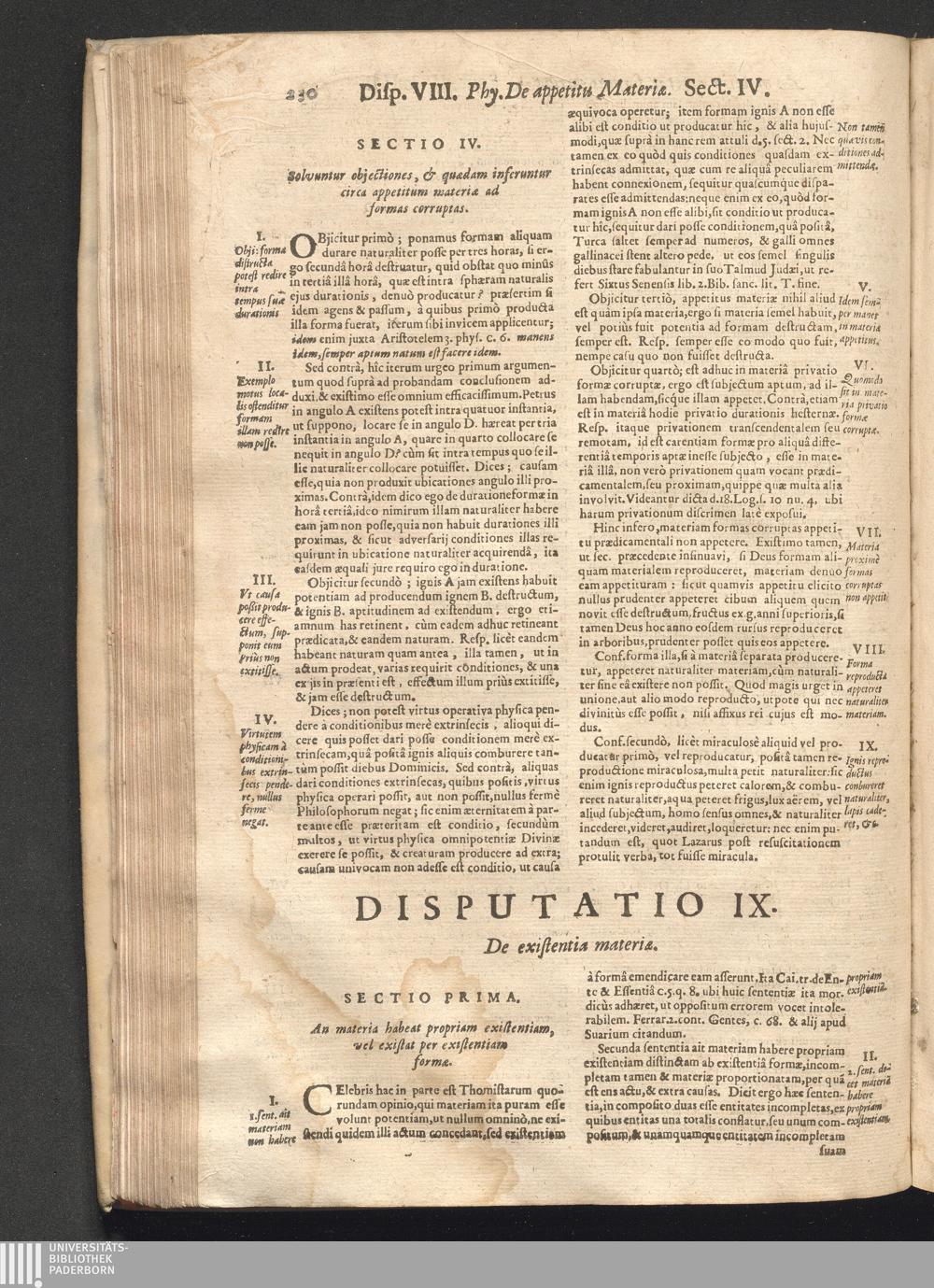 Disput. IX. De Existentia materiӕ.