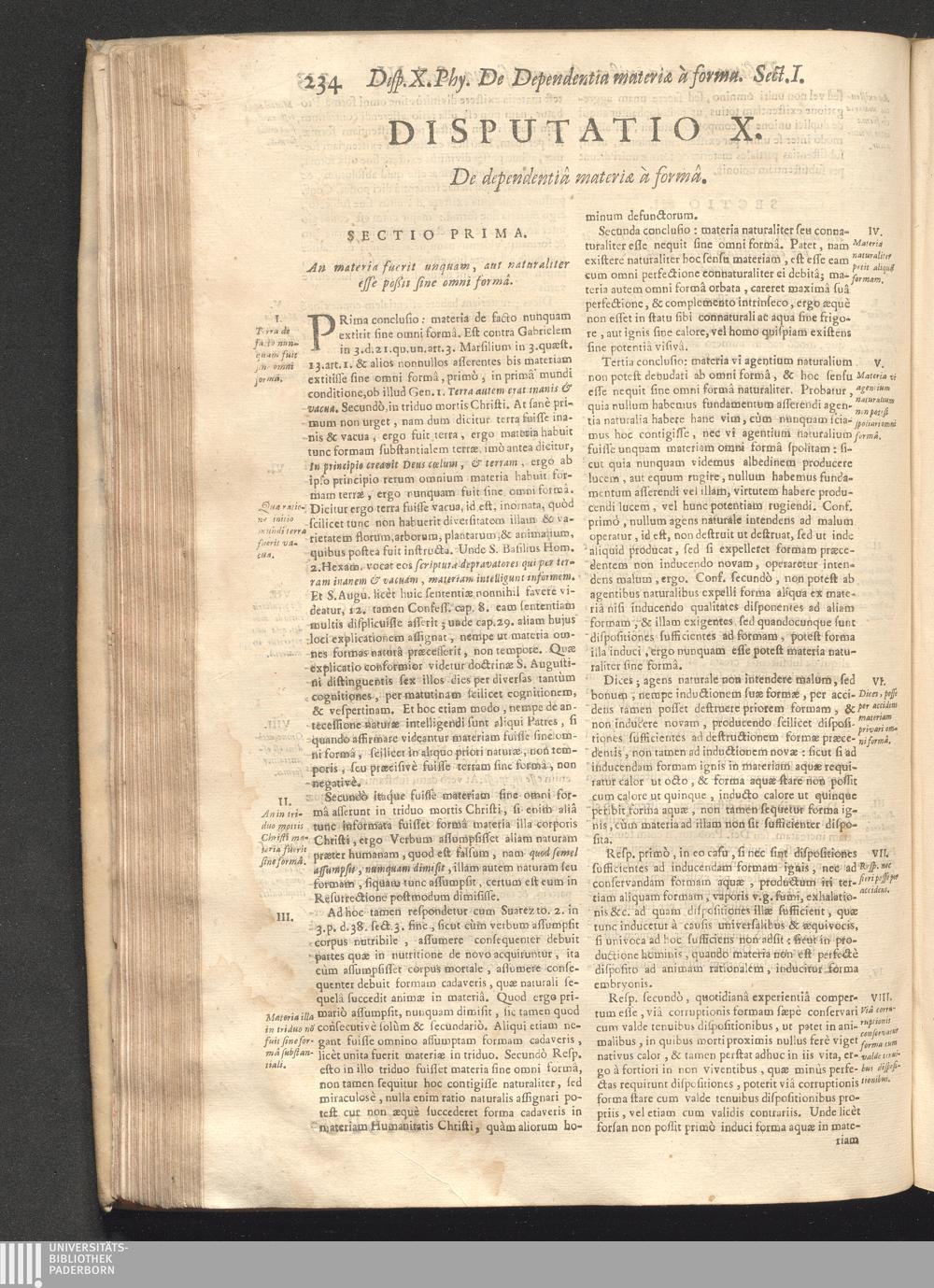 Disputat. X. De dependentiâ materiӕ à formâ.